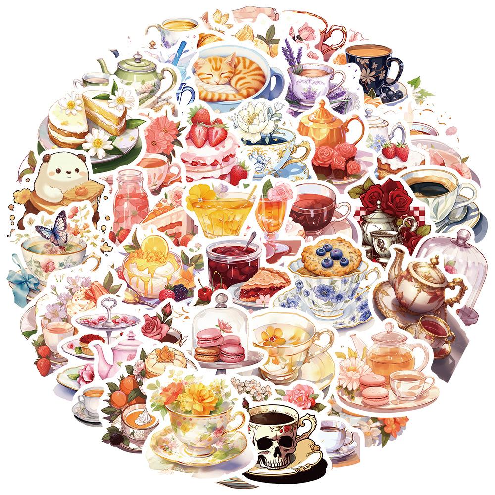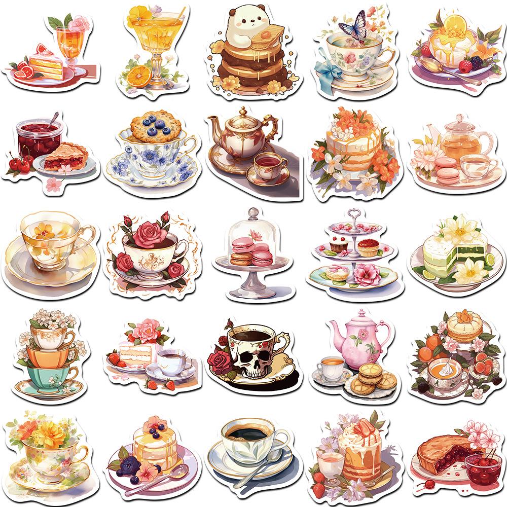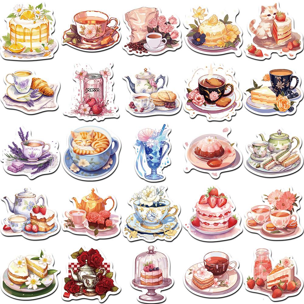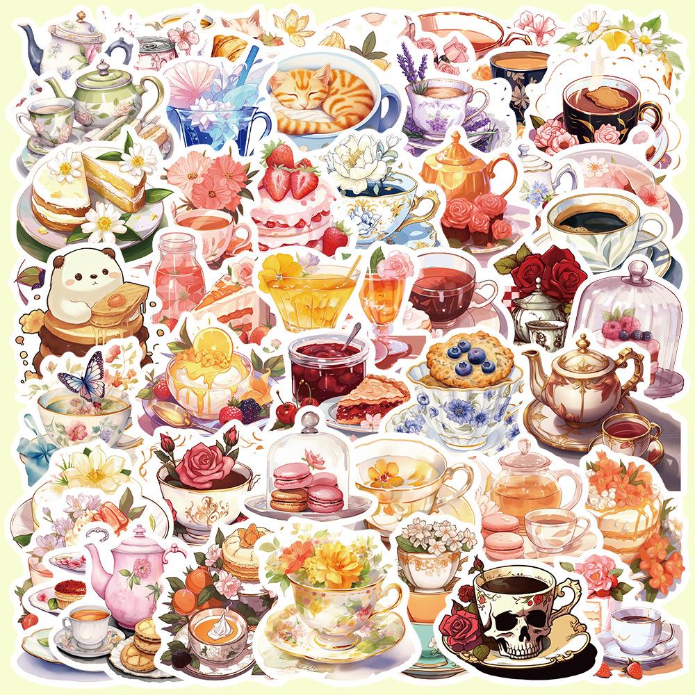 50 desenhos animados chá da tarde mão conta material adesivos copo de água skate papelaria bagagem notas adesivos à prova d'água atacado