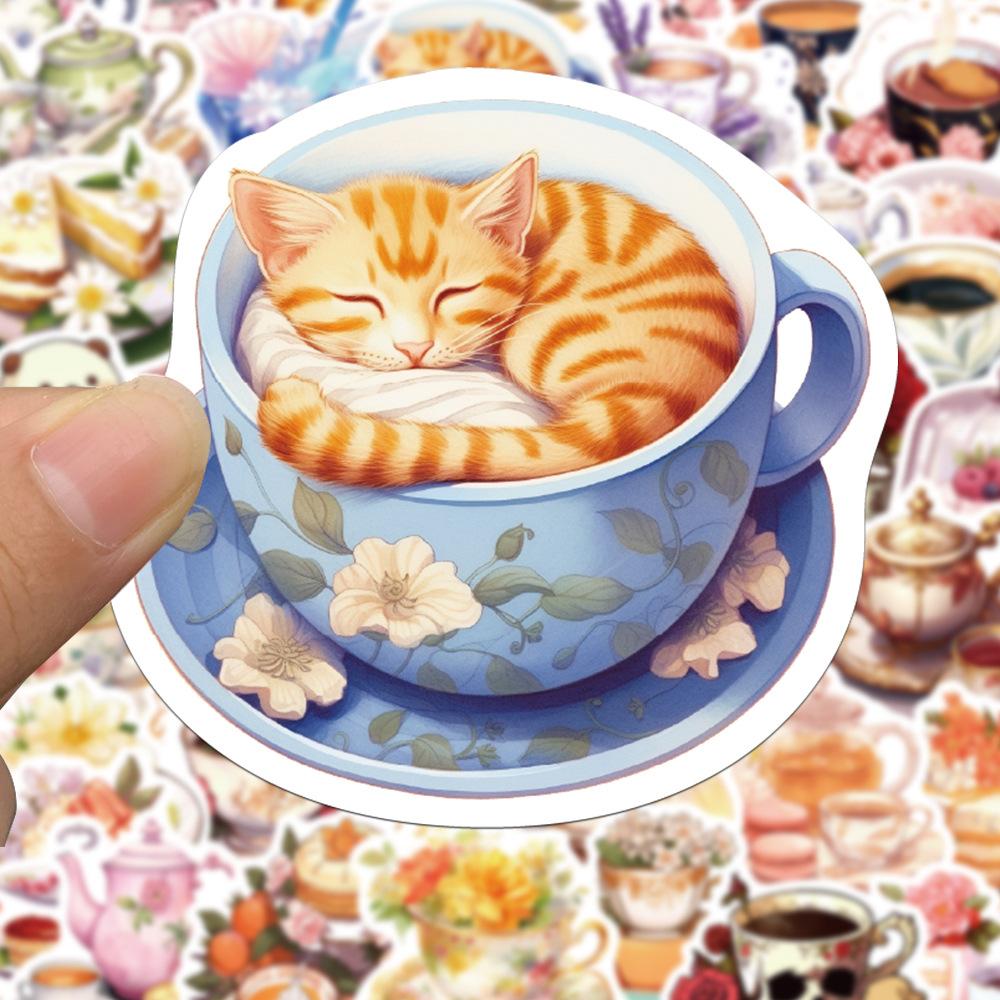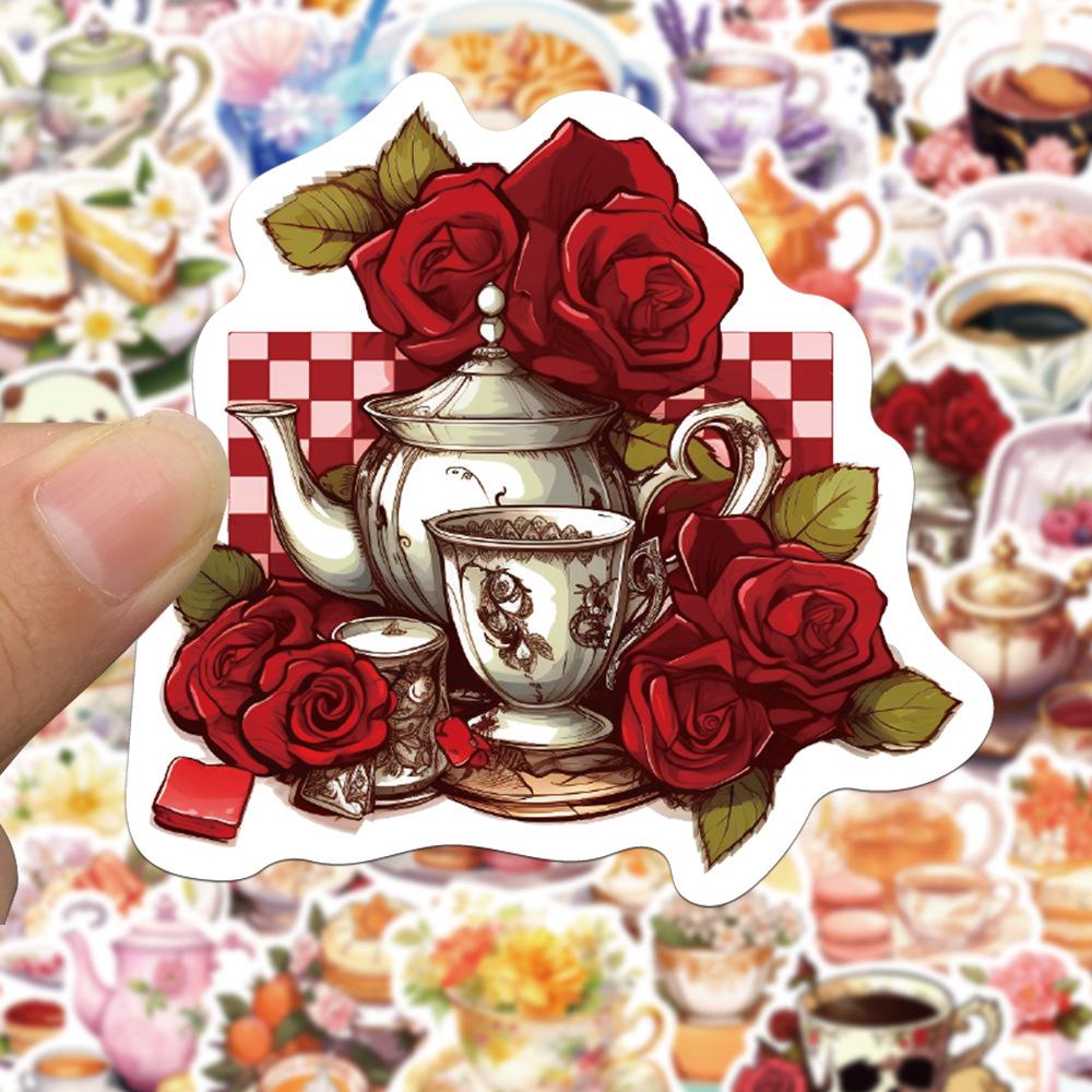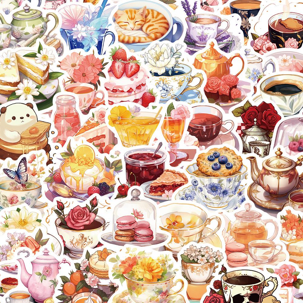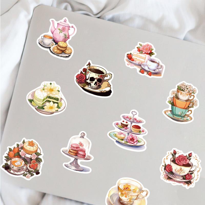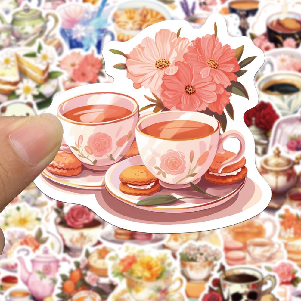 50 desenhos animados chá da tarde mão conta material adesivos copo de água skate papelaria bagagem notas adesivos à prova d'água atacado