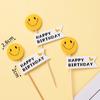 Verão dopamina ins estilo decoração do bolo rosto sorridente HBD carta urso vela sobremesa mesa plug-in