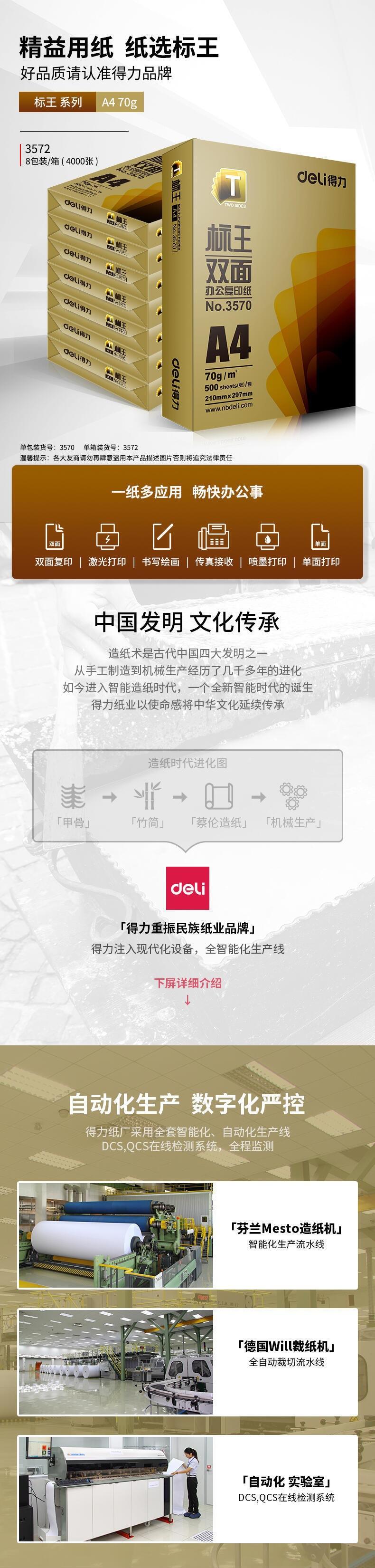 Papel de cópia A4 frente e verso Deli 3572 70g papel de impressão para escritório em casa