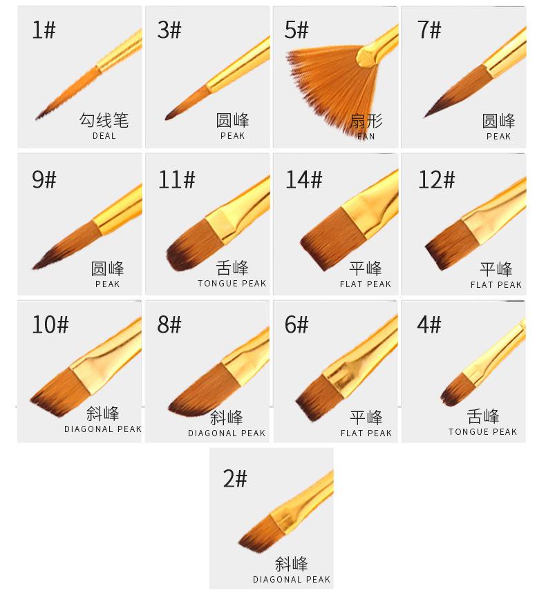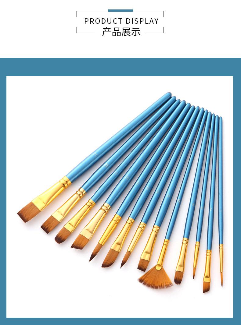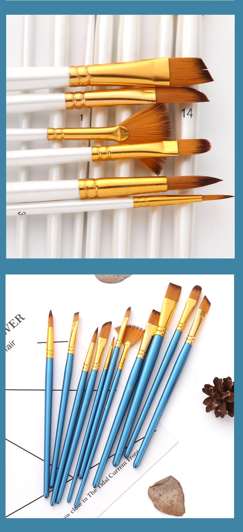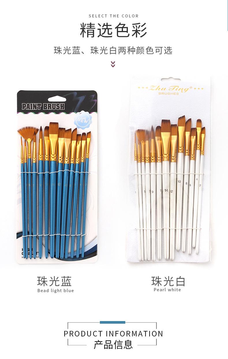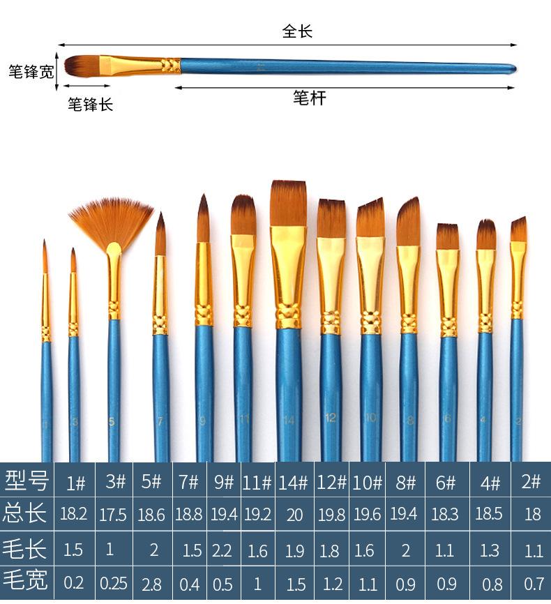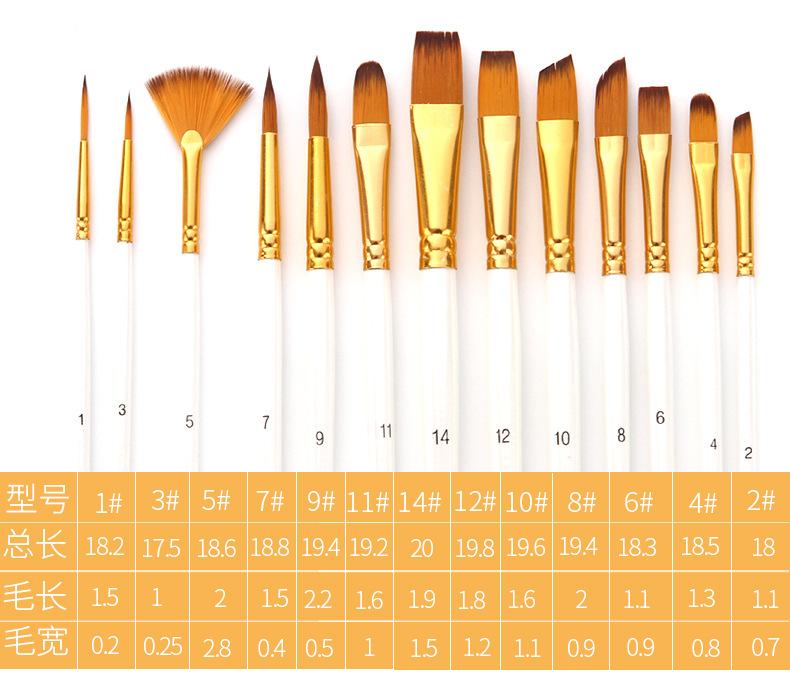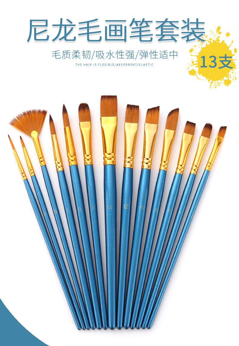 Materiais de Arte 13 Pincéis de Nylon Bicolor Conjunto de Pincéis para Guache e Aquarela Pincéis para Óleo