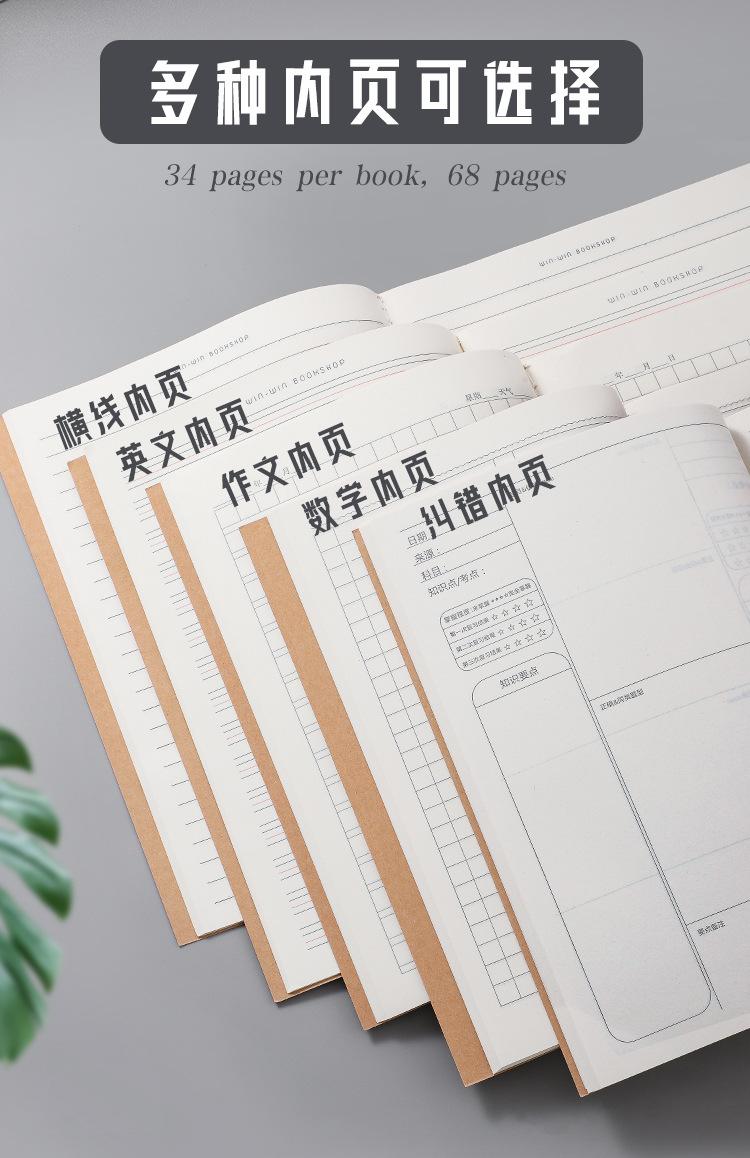 Livro Grande Forrado em Couro de Vaca 16K Livro Grande para Estudantes Assunto Matemática Chinesa Composição em Inglês Livro de Tarefa de Casa Livro Grande Atacado