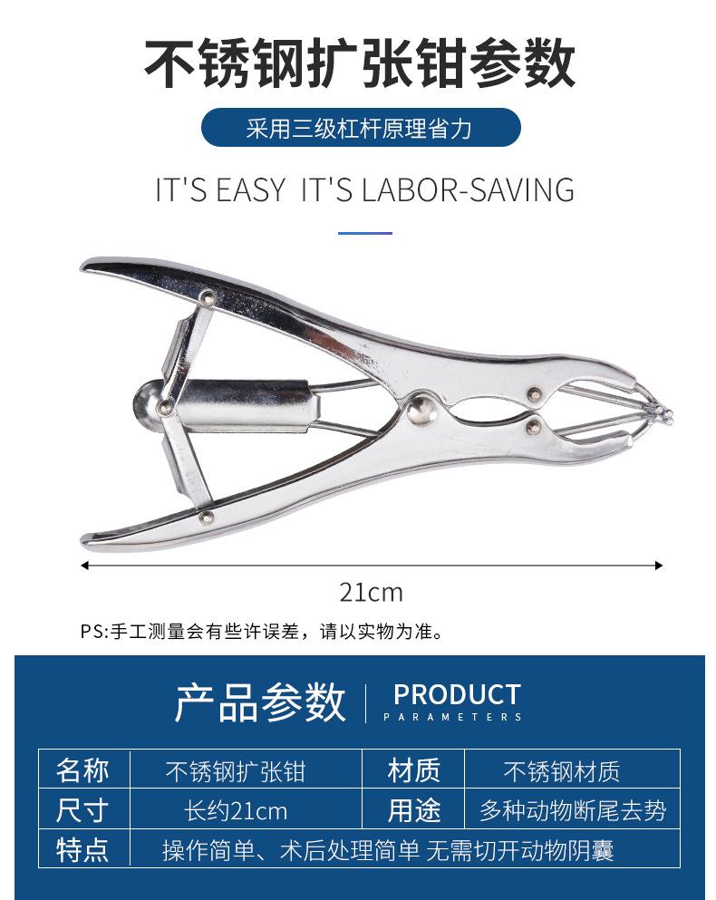 Alicate de anel de corte de cauda de suínos e ovinos em aço inox Alicate de corte de cauda de porco Alicate de expansão de bovinos e ovinos alicate de anel de castração veterinária sem sangue