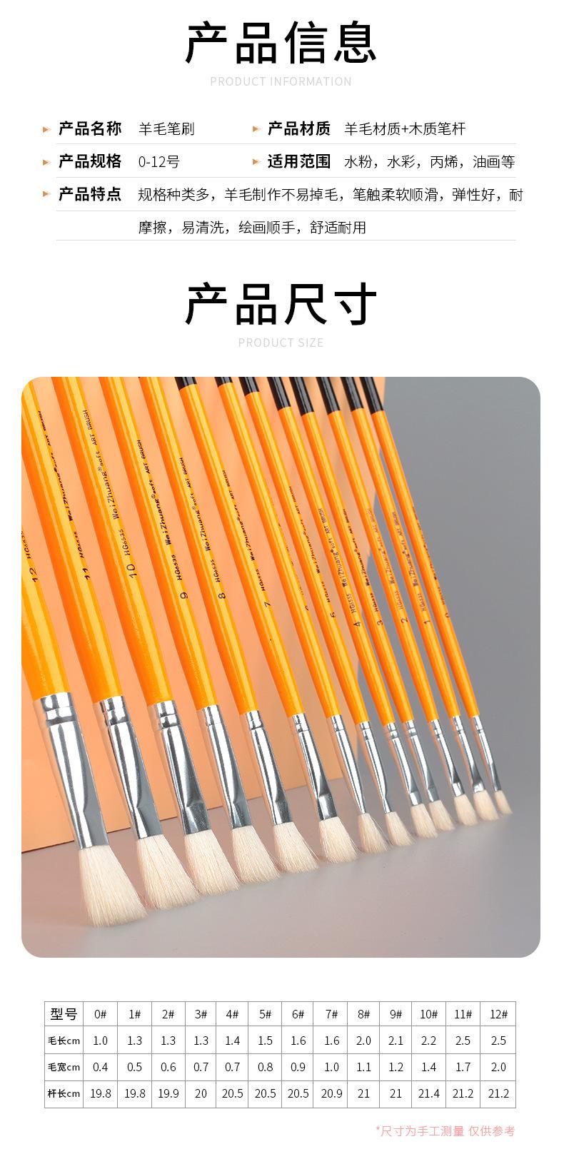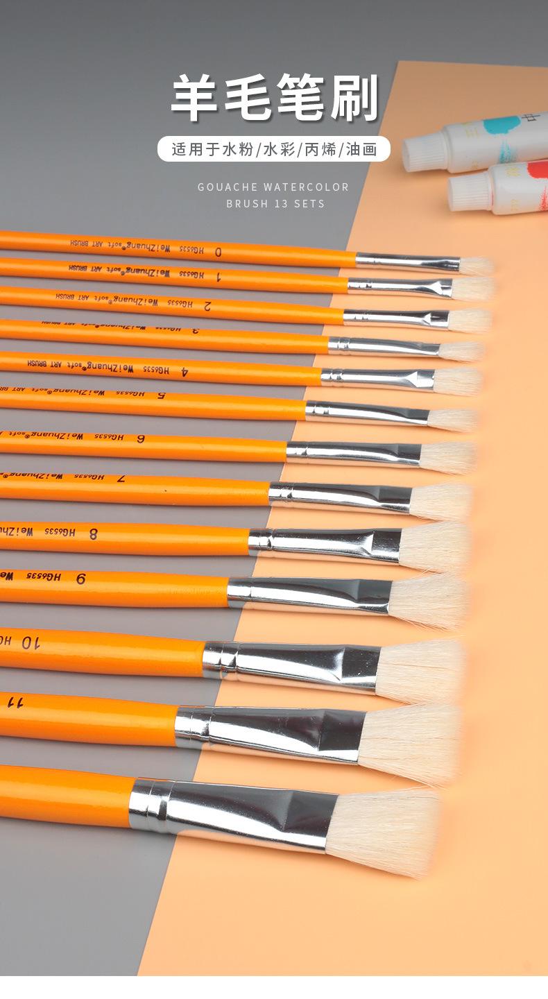 Pincel de Lã Transfronteiriço Aquarela Guache Acrílico Pincel Pincel Adulto Pintura em Cerâmica Materiais de Arte Conjunto de Pincéis Laranja