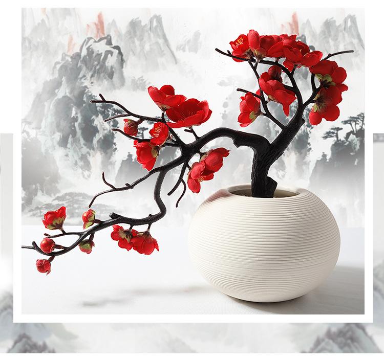 Simulação de Ramos de Flor de Ameixa Chimonanthus Flor de Pêssego Árvore Falsa Sala de Estar Ornamentos de Mesa de Jantar Floricultura Seca Bonsai Chinês Decoração de Estudo em Casa