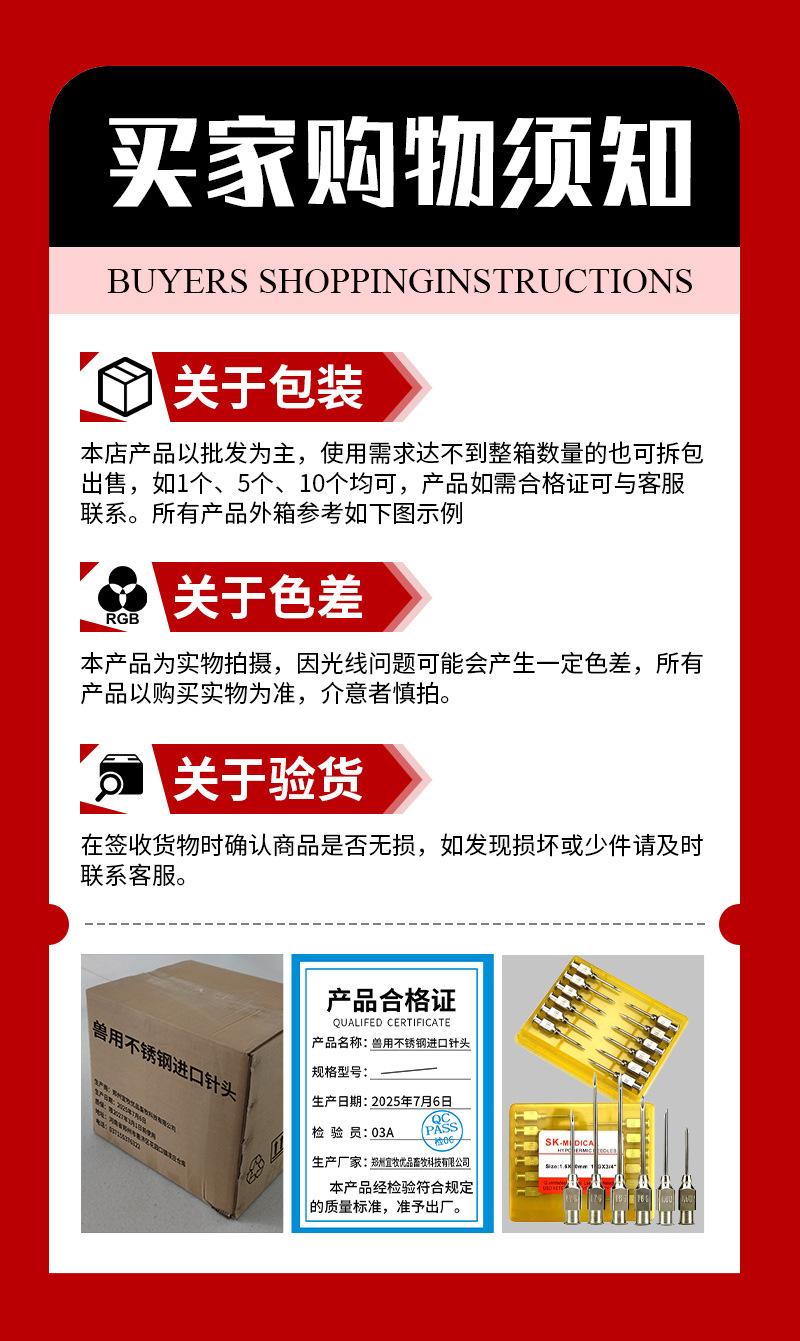 NÓS. Agulha veterinária importada 304 agulha de aço inoxidável porco gado ovelhas pecuária Agulha de seringa de vacina veterinária