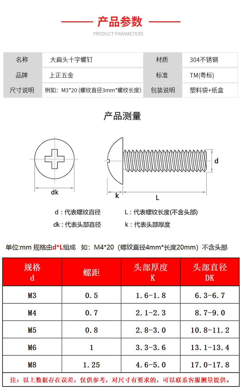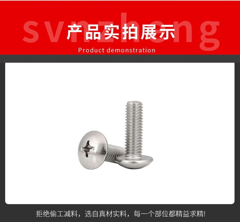 M3M4M5M6M 8 304 aço inoxidável grande parafuso cruzado de cabeça chata TM cabeça de cogumelo grande cabeça de guarda-chuva parafuso de máquina de ranhura cruzada