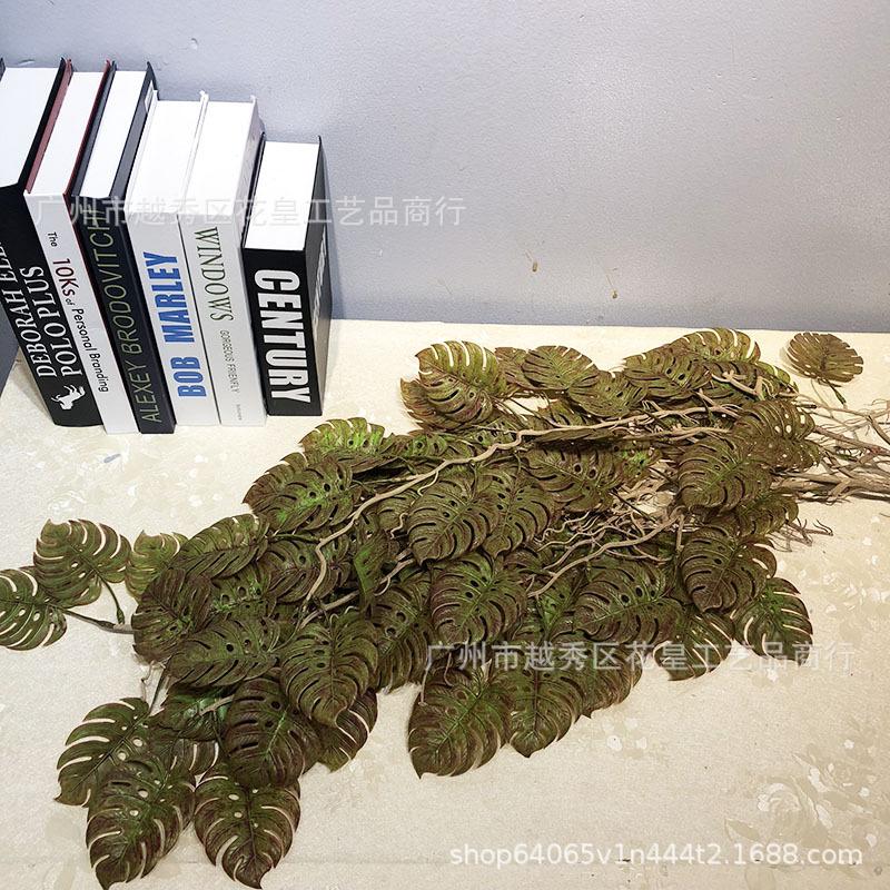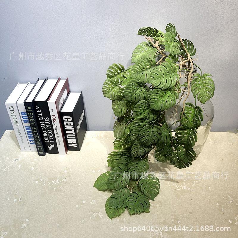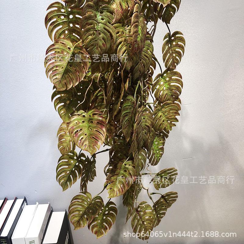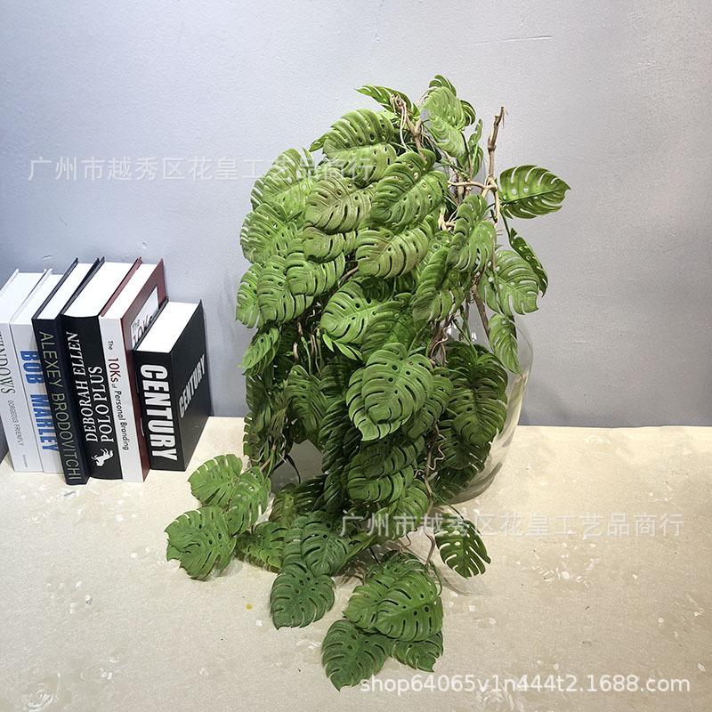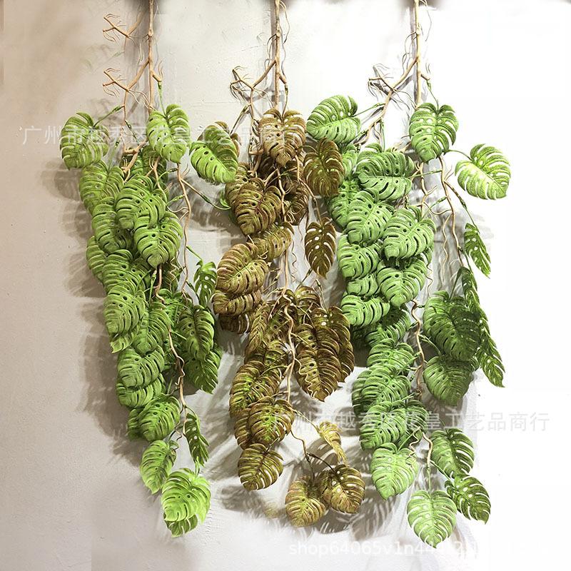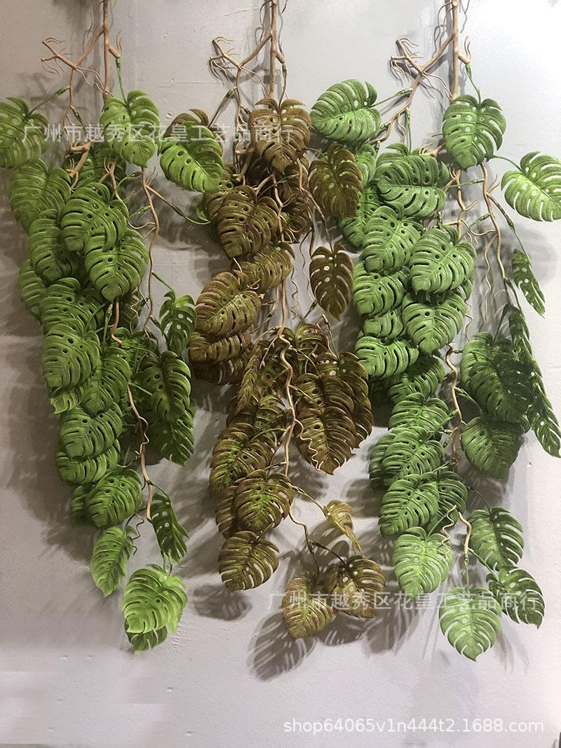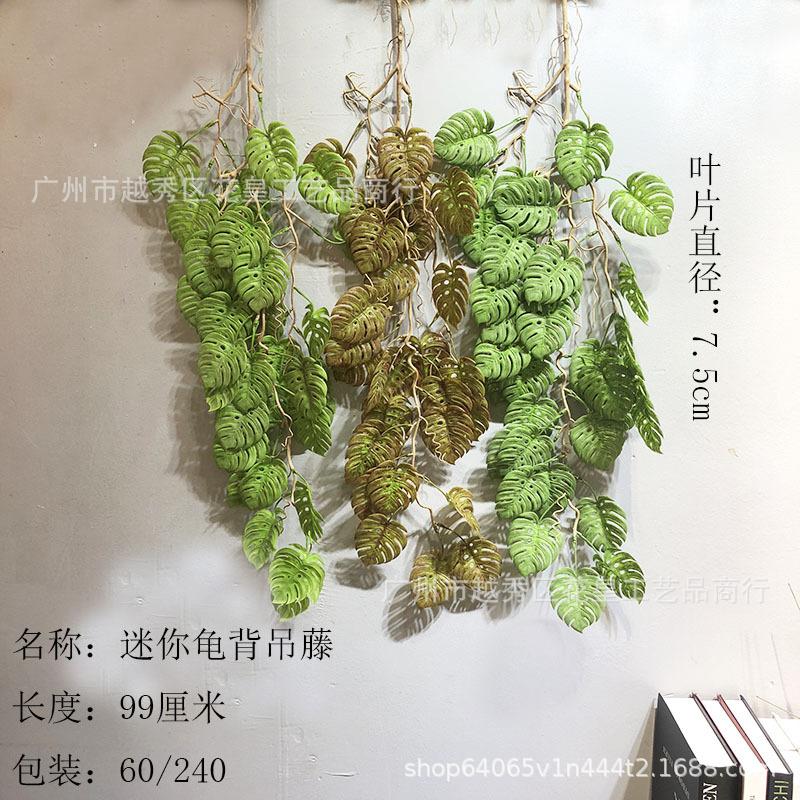 Simulação de parede pendurado folha de tartaruga verde planta decorativa rattan folha de plástico interior pendurado rattan planta parede flor artificial decoração pendurada