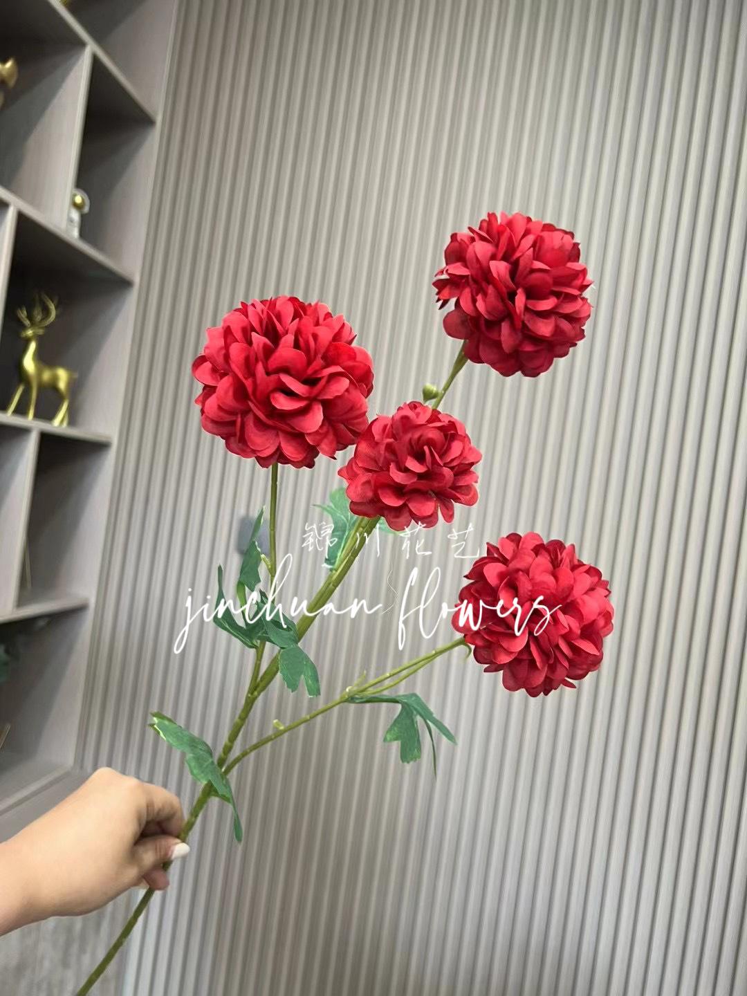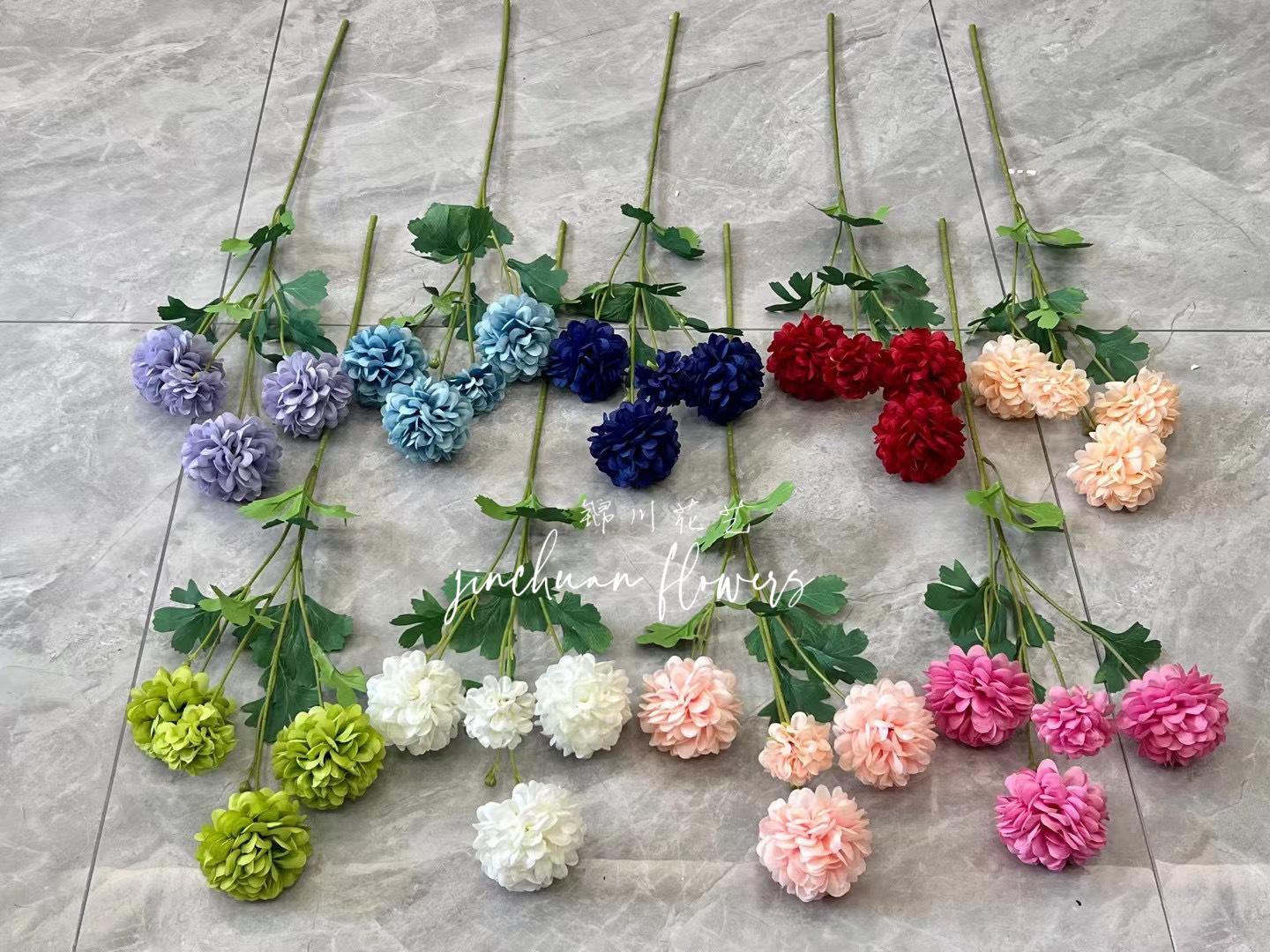 Hortênsia Simulação Flor 4 Cabeça Bola Crisântemo Simulação Flor Casamento Auditório Conjunto de Decoração Flor de Casamento Row Road Home Decoration