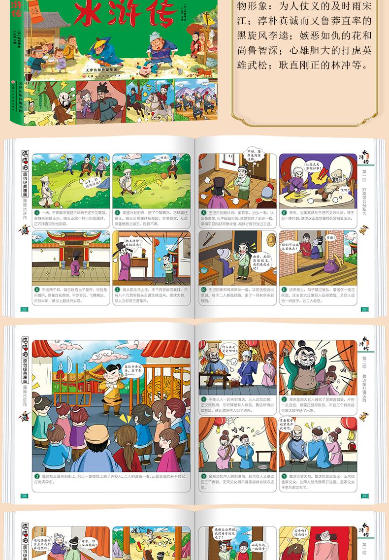 Um conjunto completo de 4 obras-primas de Xi Xi Ha, versão em quadrinhos de Journey to the West Water Margin, livros extracurriculares para escolas primárias infantis