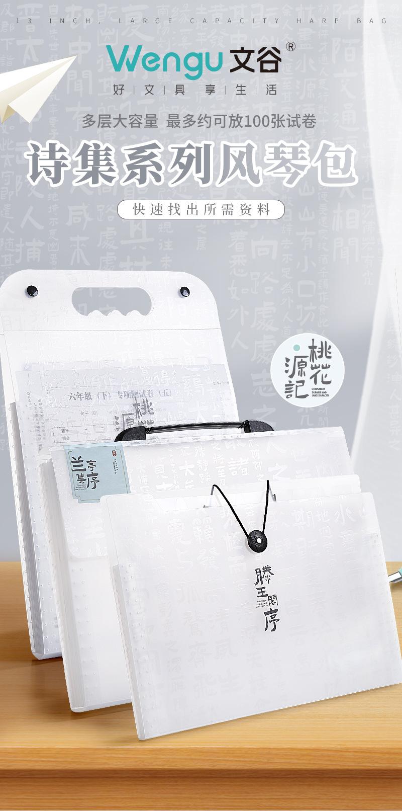 Wengu a4 coleção de poesia série órgão saco estudante multi-camada saco de armazenamento de papel pasta de classificação de papel pasta de papel