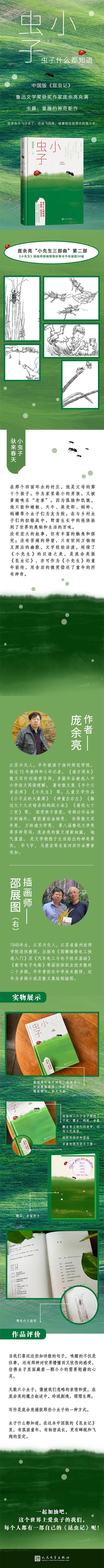Naquela aldeia cercada por água, ele é o décimo filho de seus pais. Como o menino mais novo da família, ele é chamado de "Velho Harm" por seus pais. Os dias ruins lhe deram duas asas molhadas: fome e solidão. Na primavera, verão, outono e inverno, os insetos que assombram a aldeia são seus companheiros de brincadeira, seus inimigos, seus brinquedos, sua comida e seu dinheiro de bolso. Por causa da solidão e da fome, ele só pode ser amigo e inimigo de pequenos insetos, como libélulas, besouros longhorn, besouros de esterco, gafanhotos, sanguessugas, etc. No cabo de guerra com os insetos rurais, ele experimentou os mistérios do mundo e os sabores da vida em seu crescimento selvagem. Não há uma grande narrativa, mas há tentáculos e explorações ricos; não há uma estadia dolorosa, apenas o humor de todas as coisas no mundo cuidando umas das outras. O texto é leve e animado, continuando a beleza do chinês em "Little Mister". É a versão de Pang Yuliang de "Insect Notes", e também pode ser considerada a prequela infantil de "Little Mister", retribuindo toda a magia da infância com um sorriso choroso. O ilustrador de "Little Master" Shao Zhantu tem 30 ilustrações vívidas pintadas à mão. O editor recomenda: A prosa de Pang Yuliang tem poesia fresca e poder mágico, como asas cheias de espírito literário, levando os leitores ao Rio Elm e à grama verde no fundo do tempo. Vaga-lumes são como pequenas lanternas, grilos são andarilhos noturnos e as embalagens de doces lavadas estão esperando no sol.