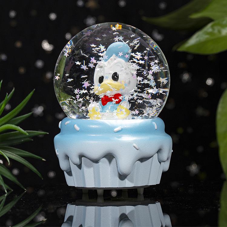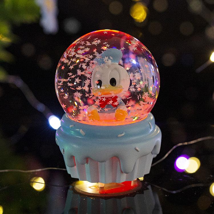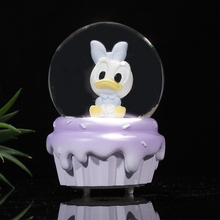 Bonito Mini Cartoon Duck Bola de Cristal com Luz Presente de Aniversário Infantil Pequeno Ornamentos de Decoração de Desktop