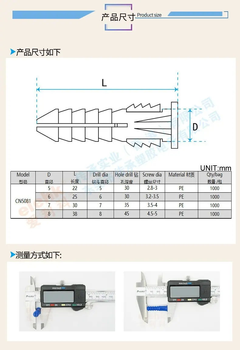 Tubo de expansão de plástico direto da fábrica Tubo de expansão PE padrão americano proteção ambiental plugue de borracha de expansão de plástico multi-especificação 6MM