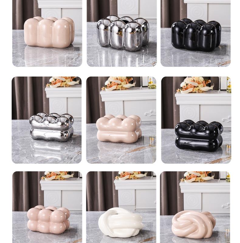 Caixa de Lenços Algodão Doce Criativa Estilo Nórdico Mesa de Jantar Cerâmica Cápsula Porta Lenços Luxo Leve Sala de Estar Doméstica Ornamento de Mesa