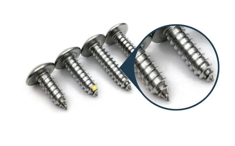 Direto da fábrica 304 aço inoxidável grande parafuso auto-roscante de cabeça chata niquelado parafuso de cabeça de cogumelo cruzado parafuso pequeno