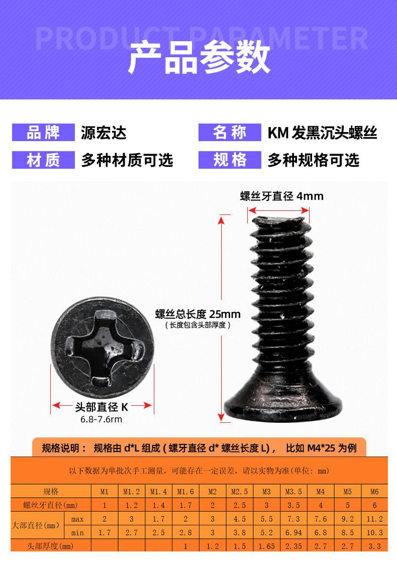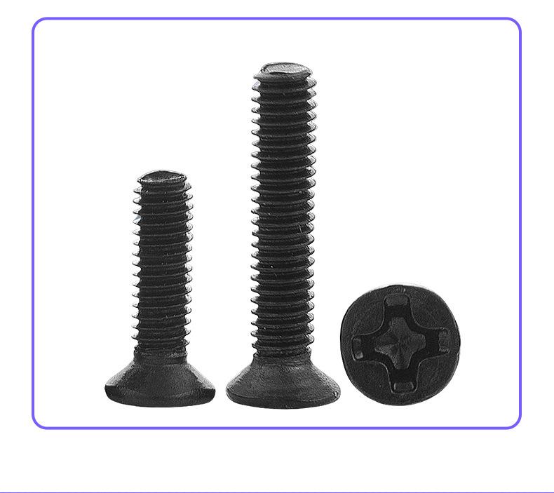 Parafuso de dente de máquina de cabeça escareada cruzada KM preta M1-M2 cabeça chata mecânico de cabeça de dente máquina de pia de máquina de dissipador de parafuso pequeno eletrônico em miniatura