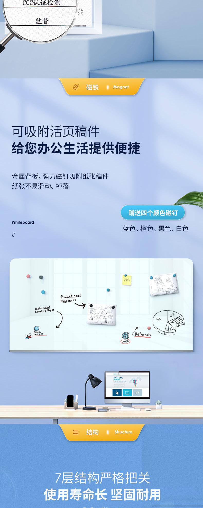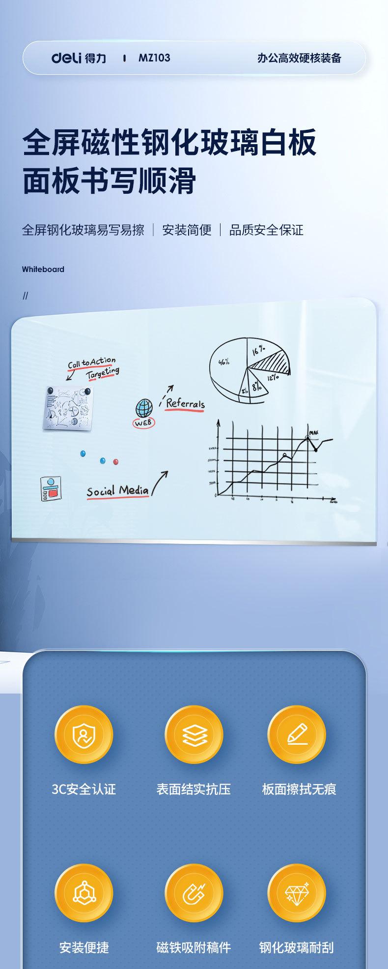 Compre Deli MZ103 Quadro Branco Suspenso Tela Cheia Magnético Temperado Vidro Suspenso Quadro de Escrita de Reuniões Quadro de Escrita Quadro Negro no atacado no Joom.pro