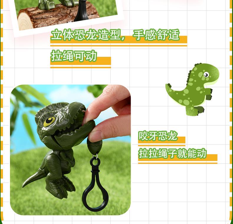 Criativo puxar linha morder dinossauro chaveiro boneca bonito saco de descompressão pingente desenho animado casal pequenos presentes atacado