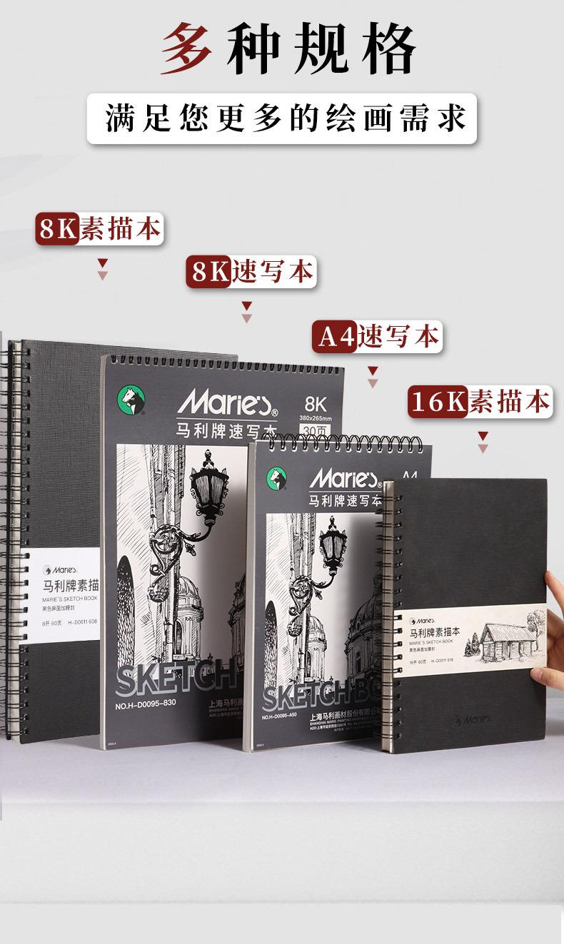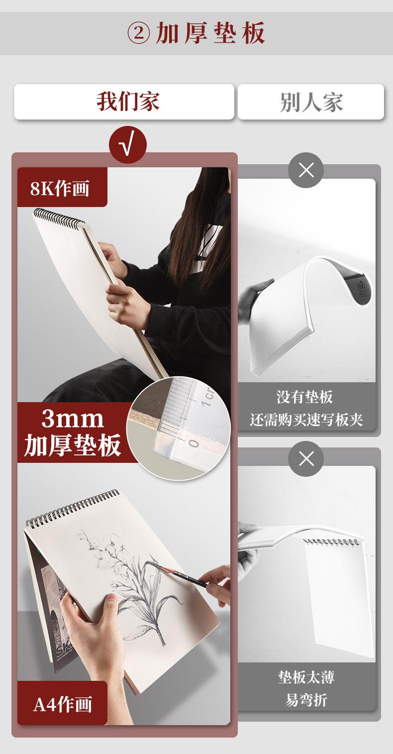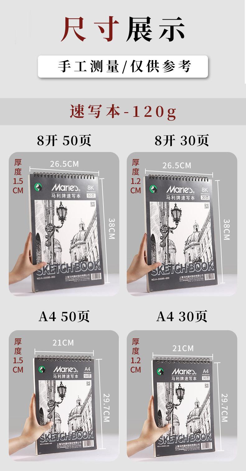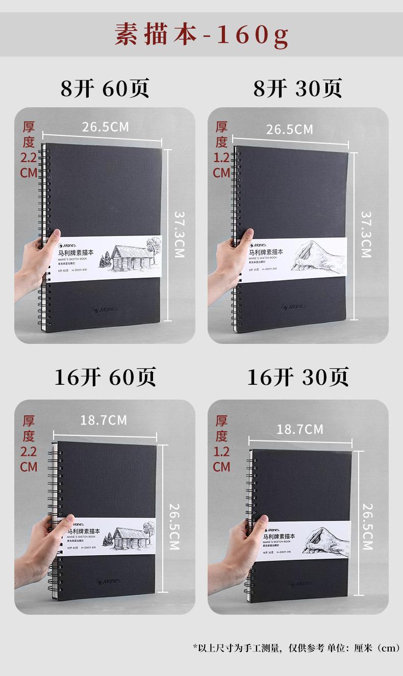 | Papel de esboço Marley 4K8K160g polpa de madeira guache papel de esboço papel de desenho de exame de estudante de arte engrossado 48 aberto |