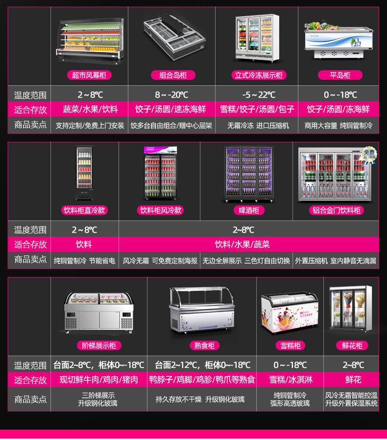 1.5 m ice cream cabinet 550L, 1.8 m ice cream cabinet 668L, 2.0 m ice cream cabinet 750L