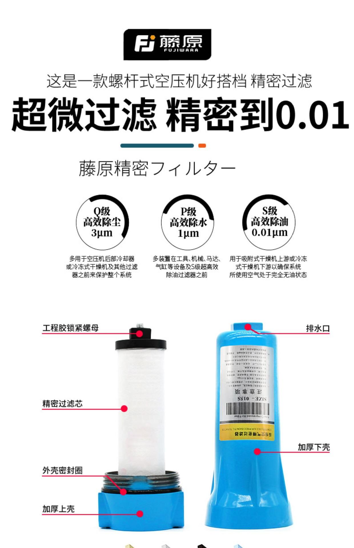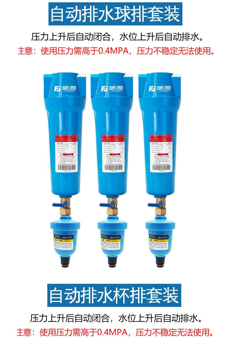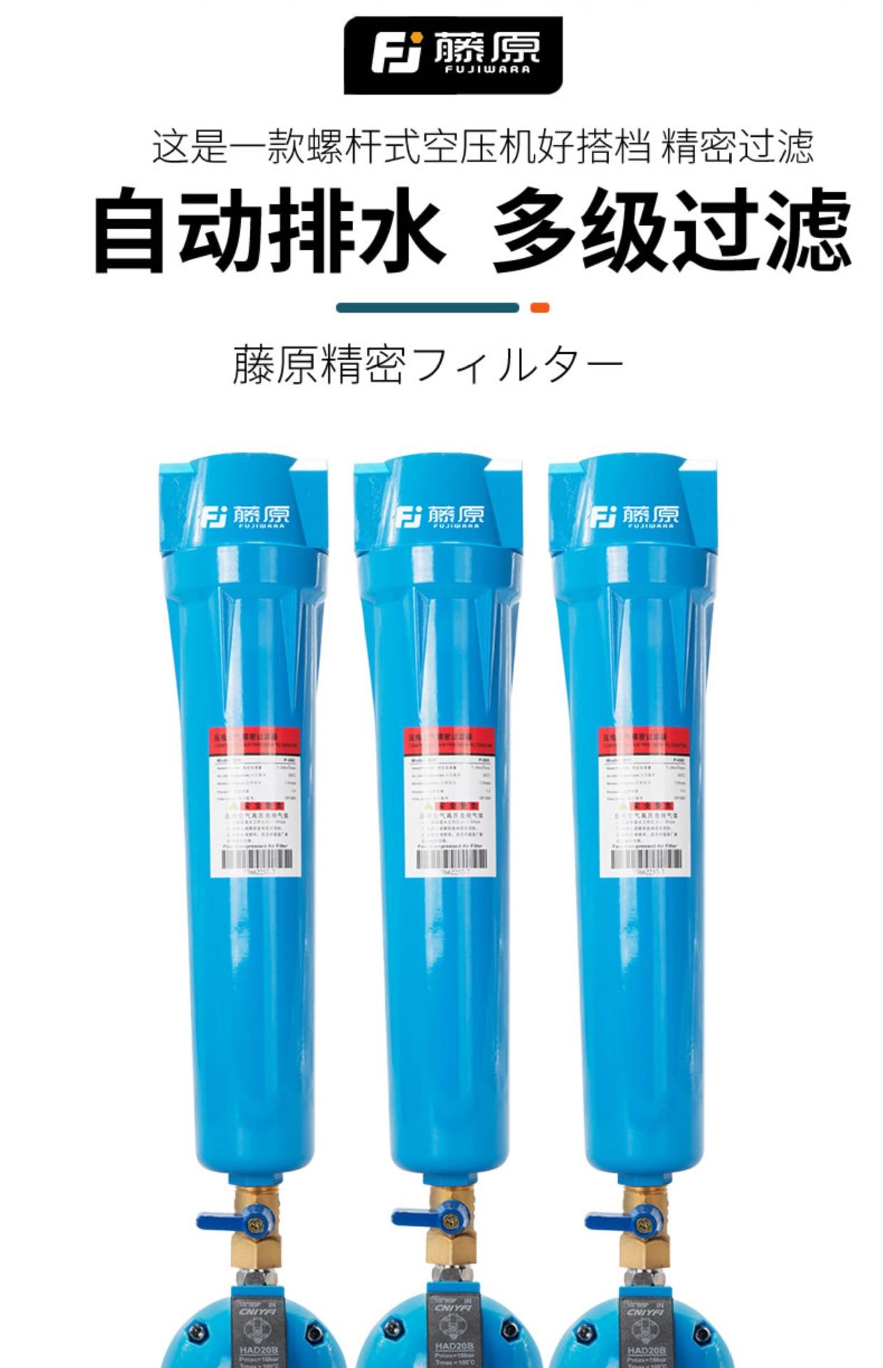 Filtro de precisão de ar comprimido Fujiwara, remoção automática de água e óleo, separador de drenagem, compressor de ar de parafuso, secador