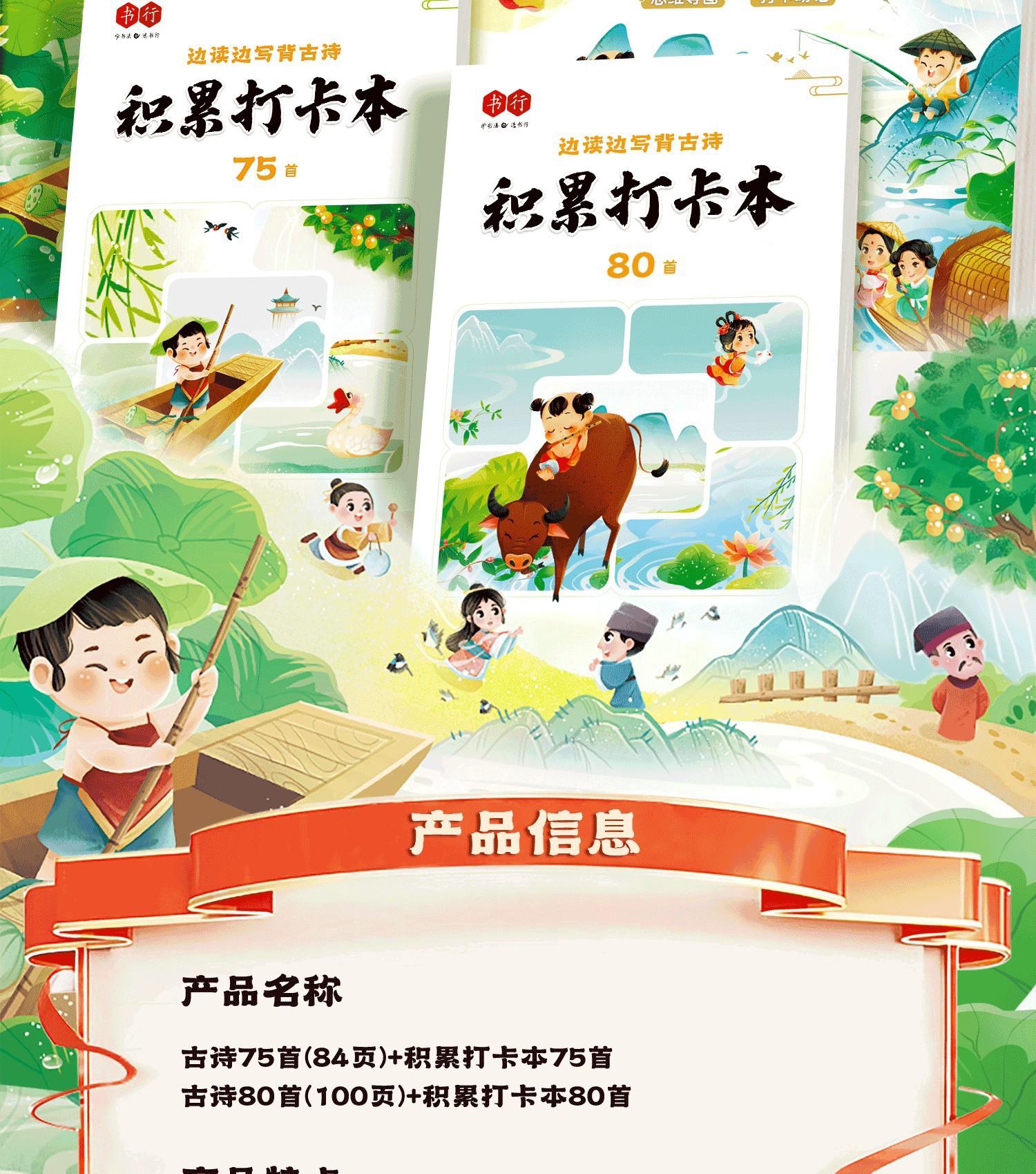 Send accumulation card book (write while learning) [2 volumes] 75 ancient poems +80
