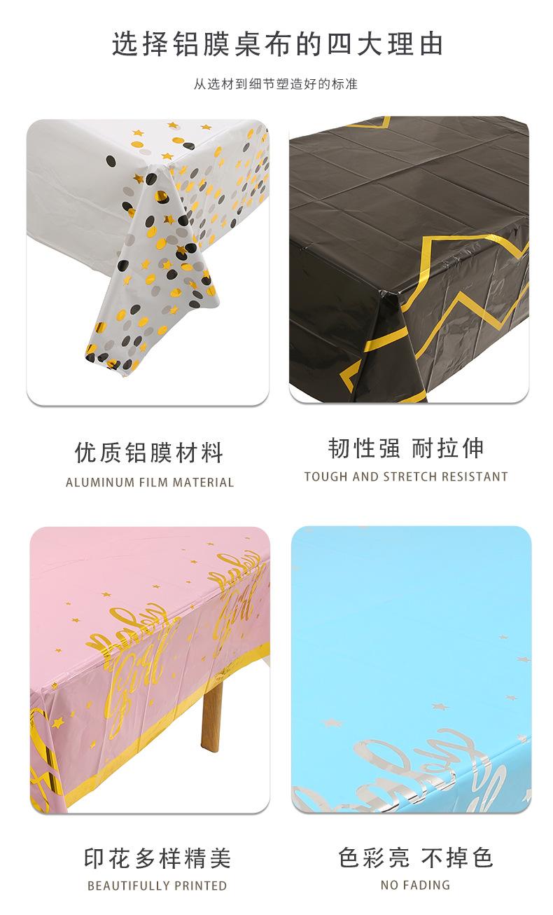 Toalha de mesa transfronteiriça da Amazon à prova d'água à prova de óleo Sucata de papel Dot Aniversário Decoração de festa preta Toalha de mesa descartável à prova de poeira