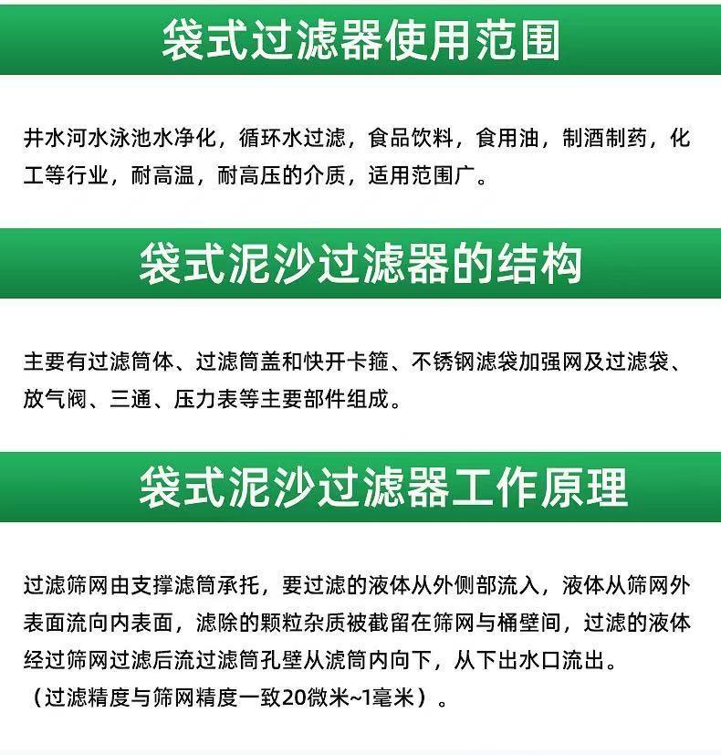 Filtro de saco de aço inoxidável 304 pré-filtro industrial poço água rio sedimento filtro de precisão