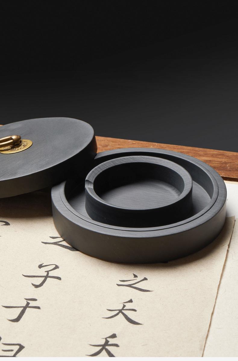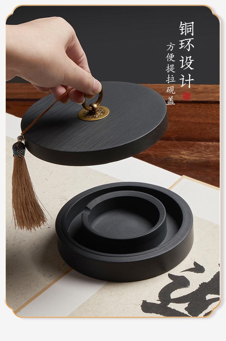 Liupintang inkstone com tampa hot pot inkstone duplo círculo original pedra hidratante caligrafia estudante adulto inkstone uma geração de cabelo