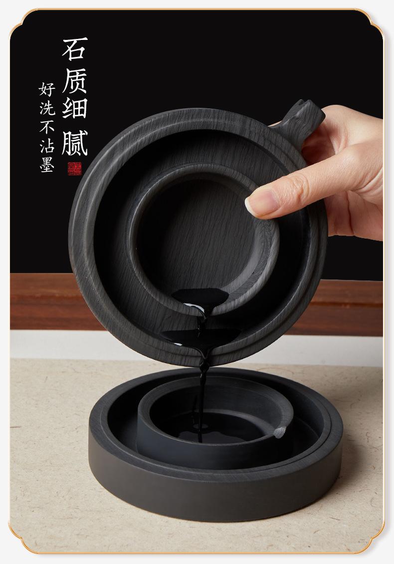 Compre Liupintang inkstone com tampa hot pot inkstone duplo círculo original pedra hidratante caligrafia estudante adulto inkstone uma geração de cabelo no atacado no Joom.pro