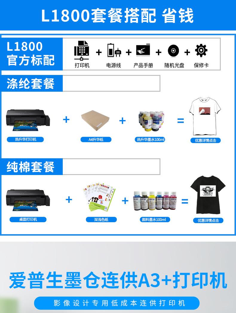 Impressora de sublimação Epson L1800 algodão puro T-shirt roupas pequeno equipamento de impressão impressora de transferência térmica A3