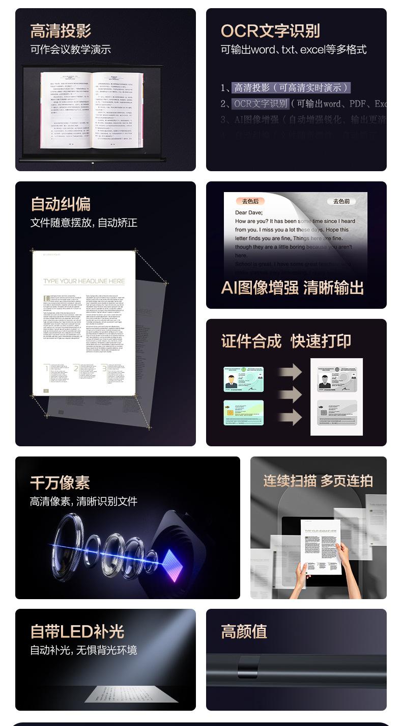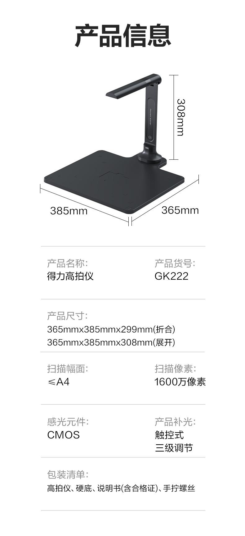 Deli GK121 Scanner de alta definição 10 milhões de pixels Scanner de PDF de dados de papel de teste de documentos de escritório