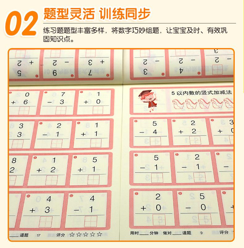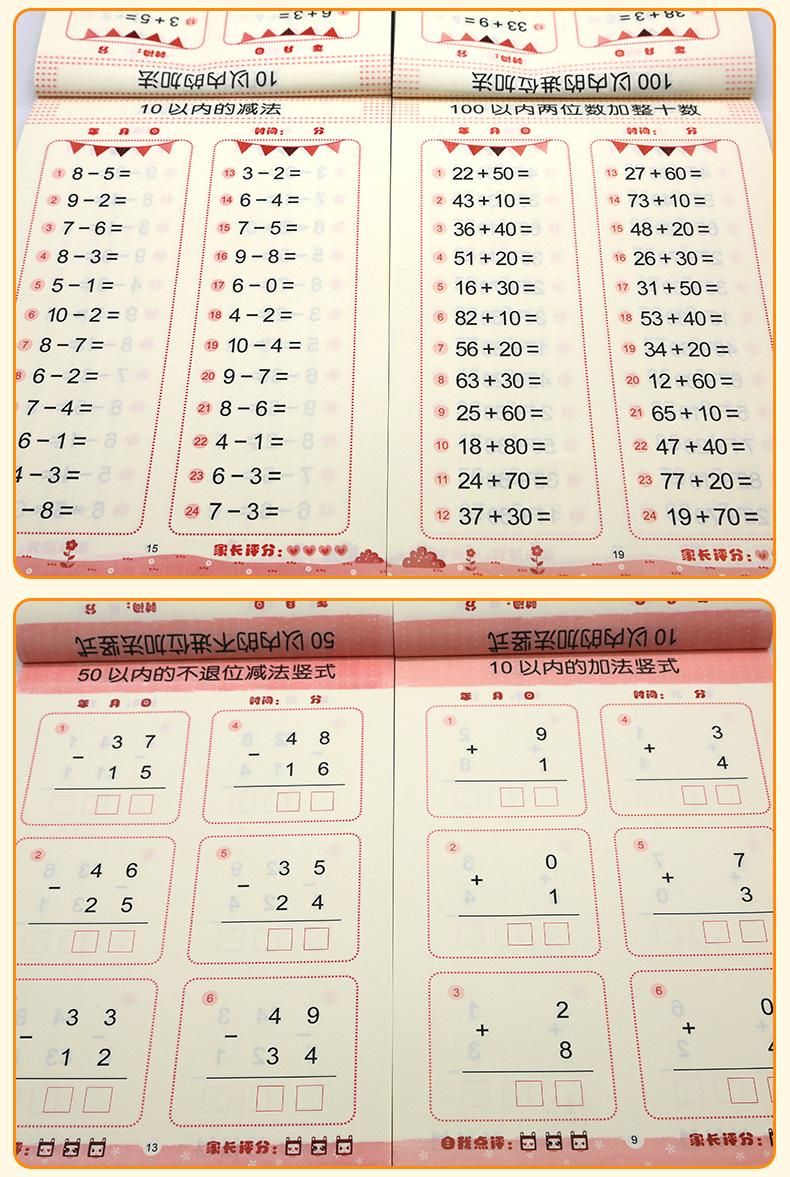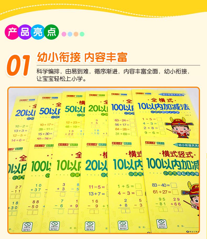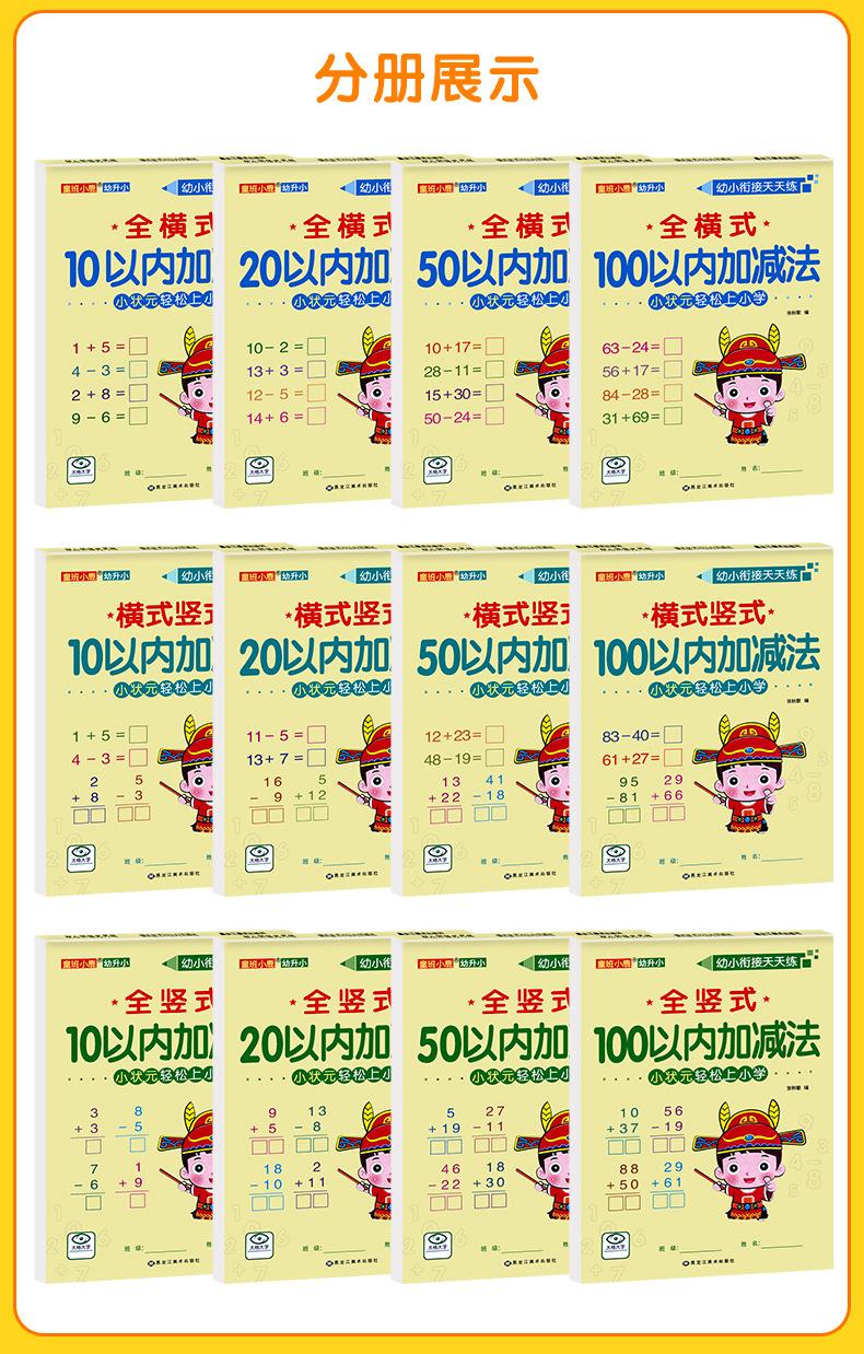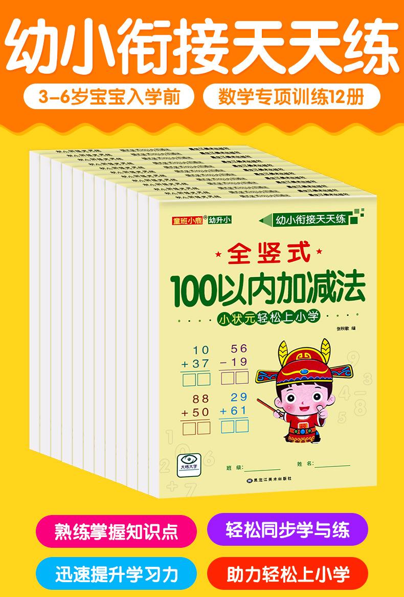 Todos os 12 volumes de crianças pequenas para crianças pequenas se conectarem entre si para praticar adição e subtração horizontal e vertical todos os dias para ir facilmente à escola primária para traçar cadernos de exercícios vermelhos