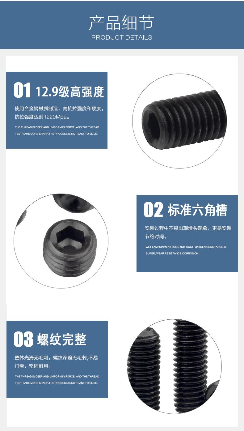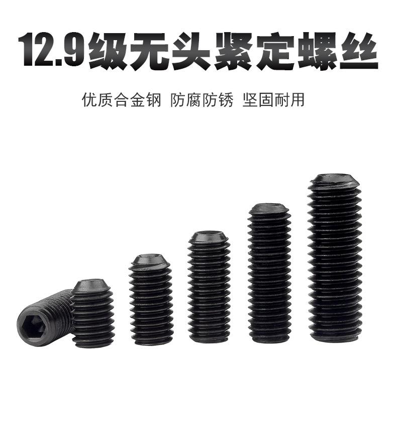 Parafuso de fixação preto 12,9 grau côncavo final conjunto máquina medidor copo cauda sem cabeça hexágono soquete parafuso base fio M10M12