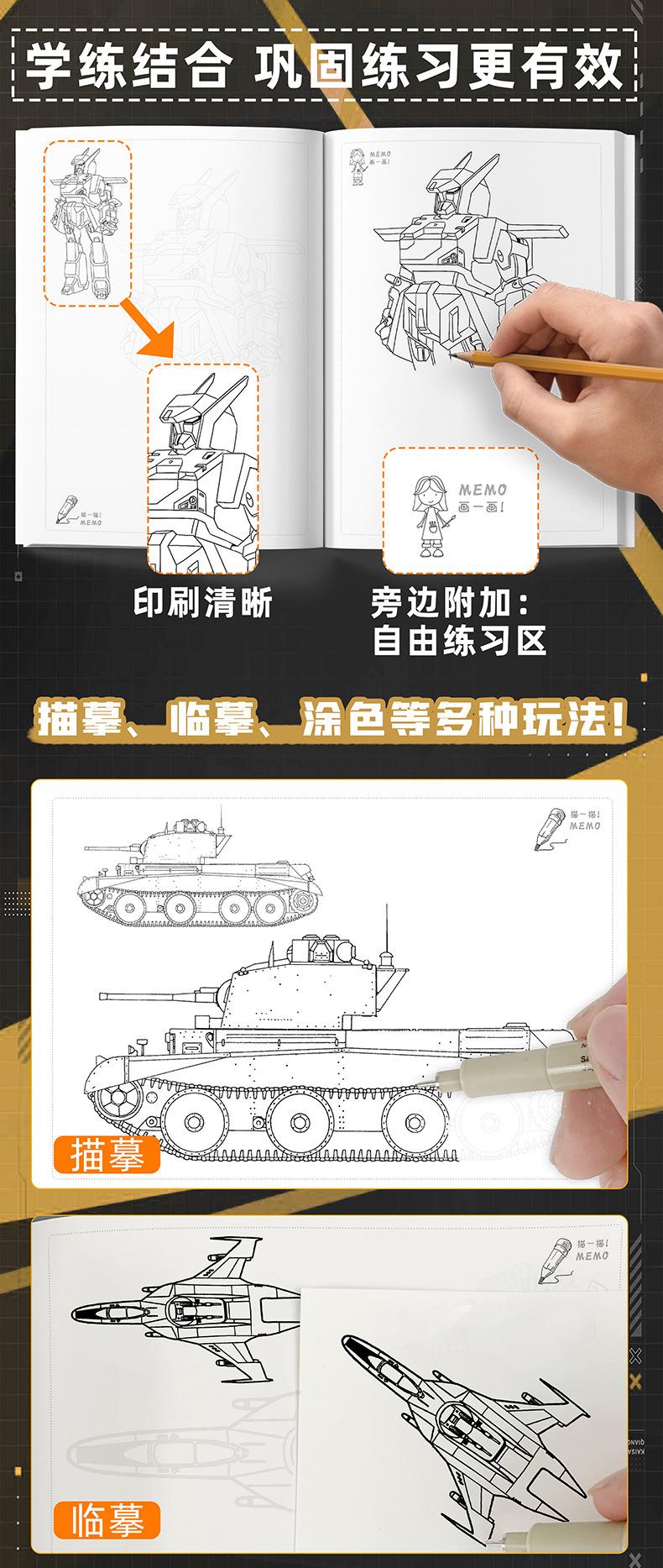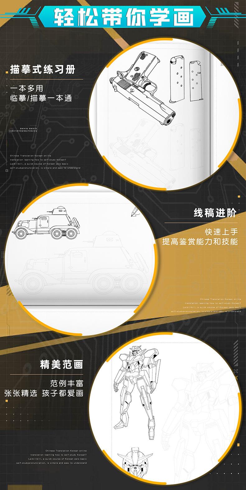 Tanque carruagem Mech Warrior armas de fogo arma dos desenhos animados linha de anime Rascunho Descrição livro Popular Science simples acidente vascular cerebral crianças pintura