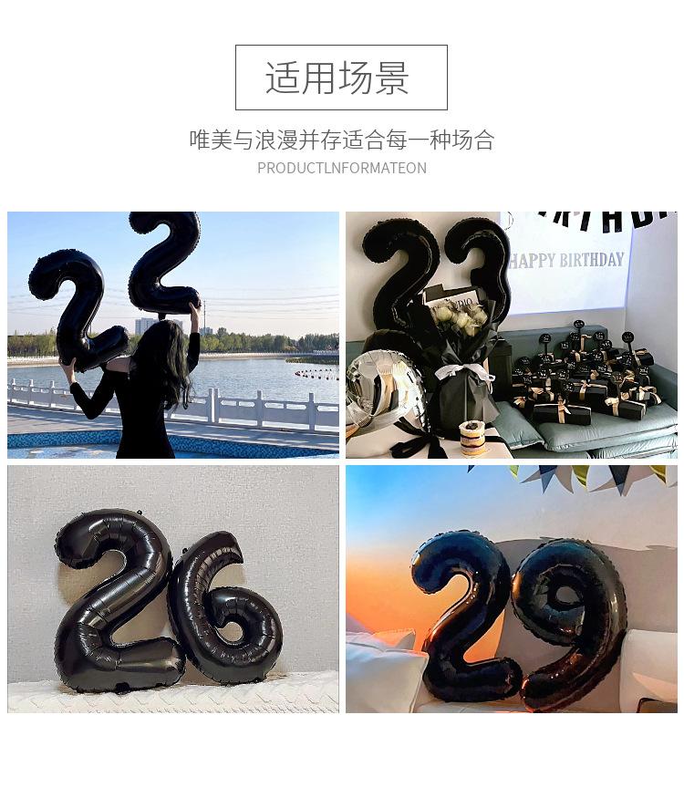 Balão digital preto de 32 polegadas ins0-9 grande adereços de balão de foto decoração de cena de festa de um ano de idade