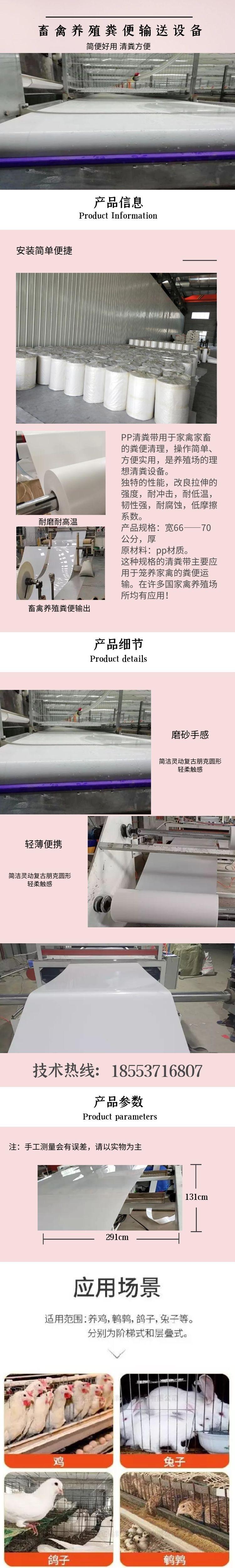 Correia de limpeza de esterco de Pp, Correia de limpeza de esterco de galinha, Correia de limpeza de esterco de criação de granjas de galinhas, Especificação de tamanho Personalização do fabricante