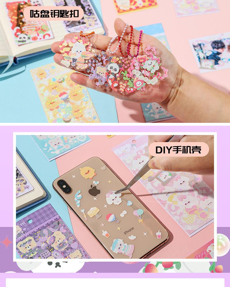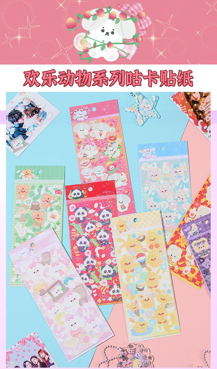 Feliz animal série goo cartão adesivos pvc à prova d' água bonito telefone móvel adesivos decorativos coreano diy mão conta material atacado