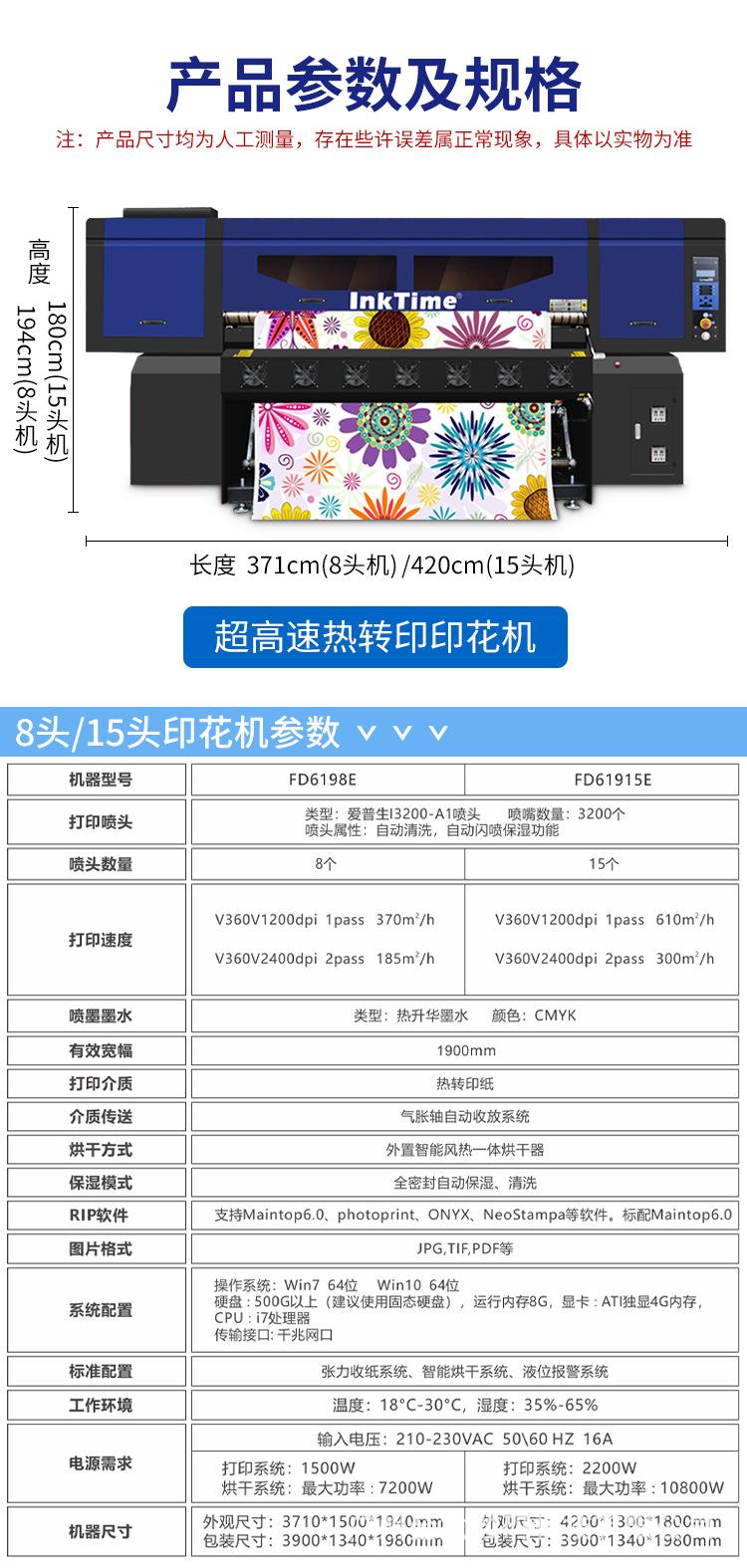 Máquina de impressão digital de bico de grau industrial de alta velocidade 15 impressora de sublimação de transferência térmica de tecido de fibra química de alto desempenho