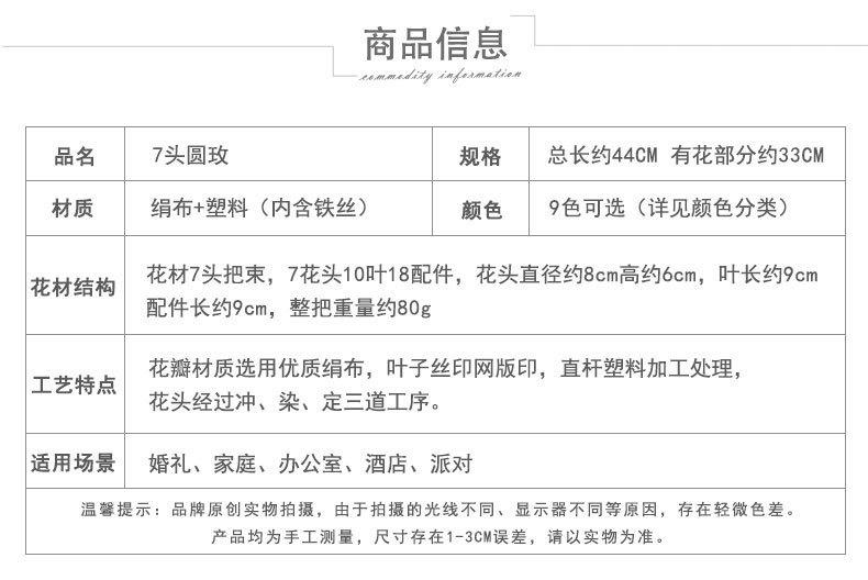 Rosa Redonda de 7 Cabeças Simulada Flor Falsa Flor de Chão para Casamento Decoração de Salão de Casamento Floral Flor Artificial de Plástico DIY Arranjo de Flores