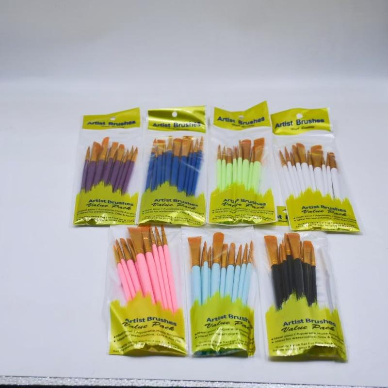 Pincéis de Pintura Guache Aquarela Amazon Pincéis de Pintura a Óleo Transfronteiriços Cabo de Plástico Conjunto de 10 Peças Fabricante Atacado Itens Mais Vendidos