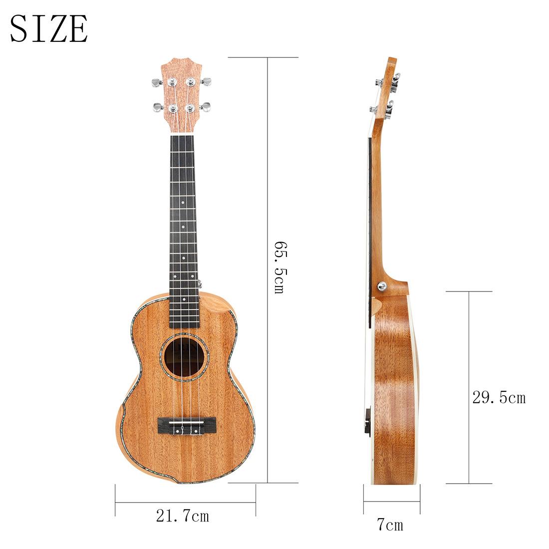 Lista de embalagem: Ukulele*1 Bolsa*1 Afinador*1 Capo*1 Cordas*1 Palheta*2 Pano de limpeza de piano*1