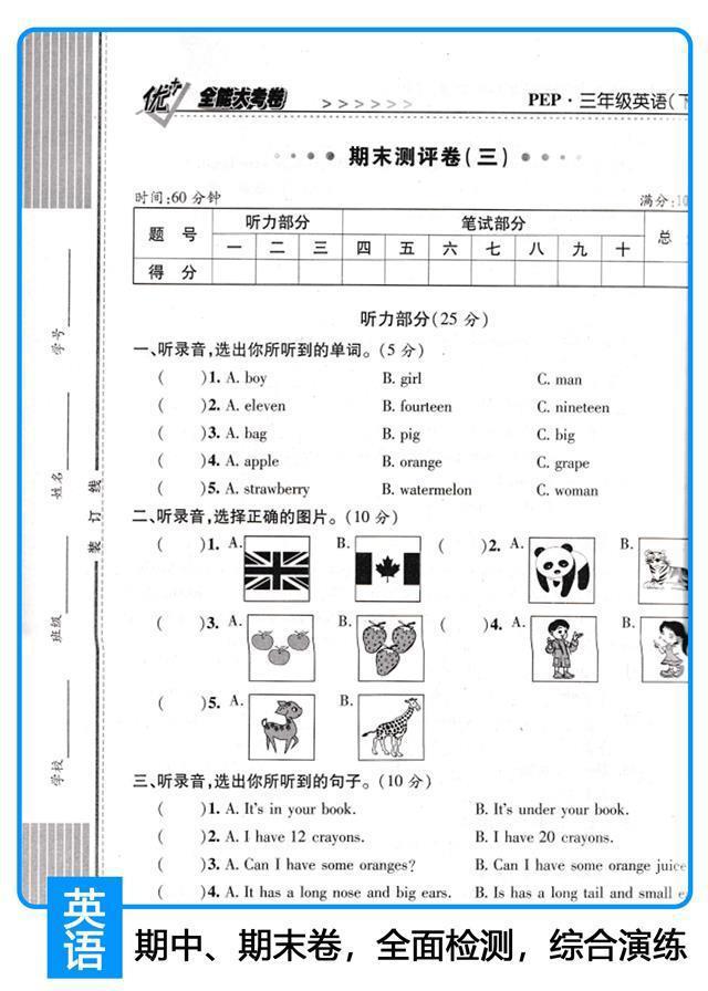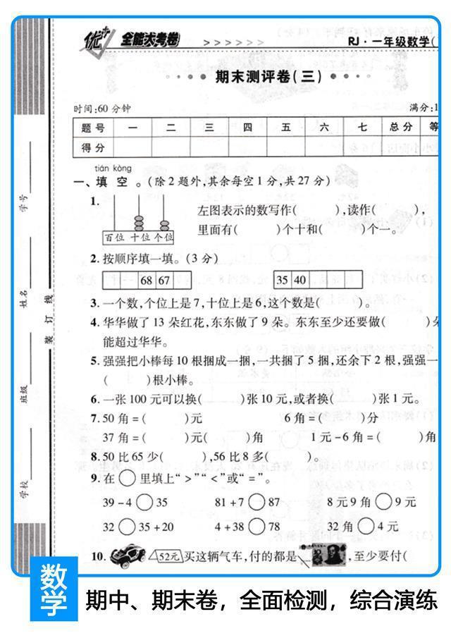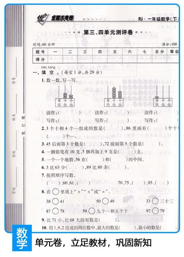 Você + grande exame geral papel um dois três quatro cinco seis volume dois RJ People's Education Edition matemática chinesa unidade de inglês período