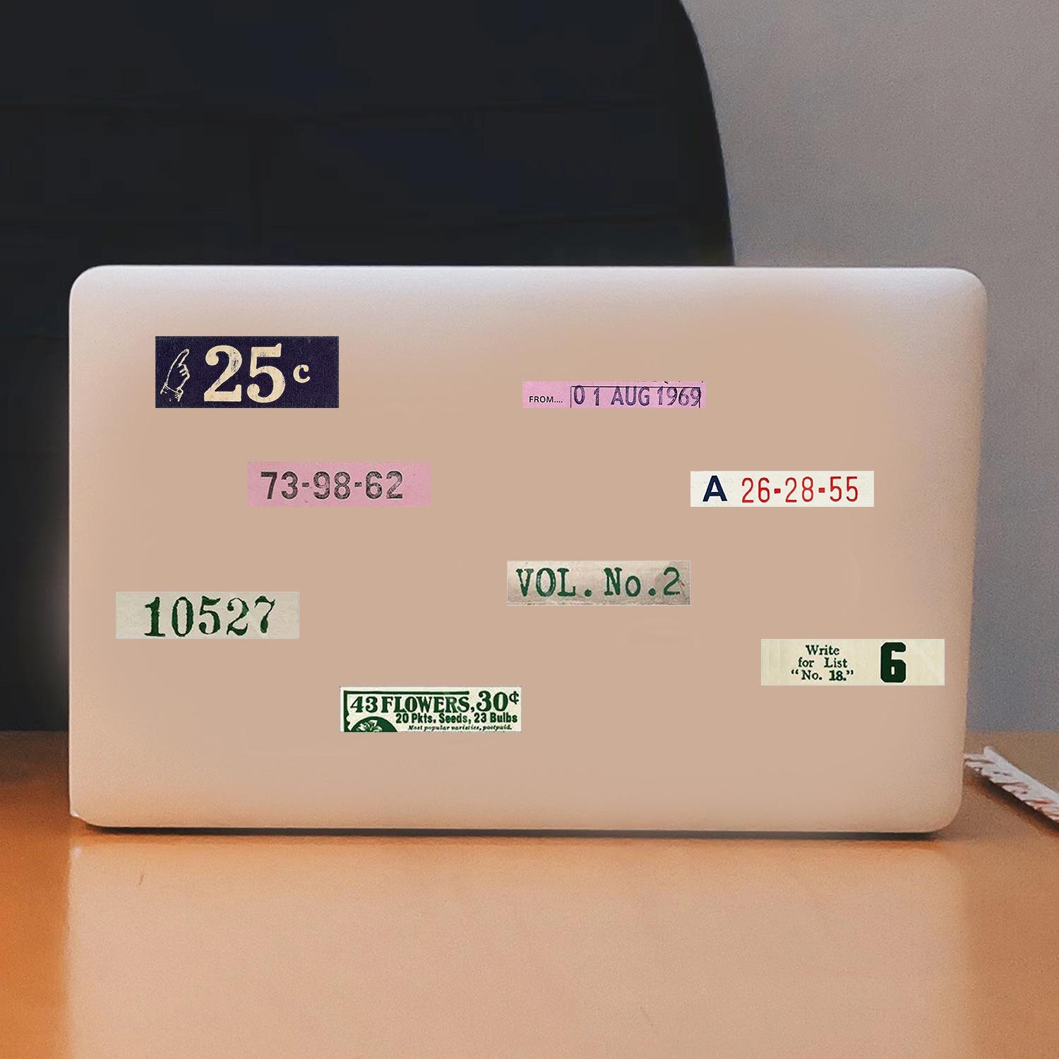 50 Cartoon Retro Digital Label Hand Account Material Adesivos Copo de Água Papelaria Bagagem Notas Adesivos À Prova D'Água