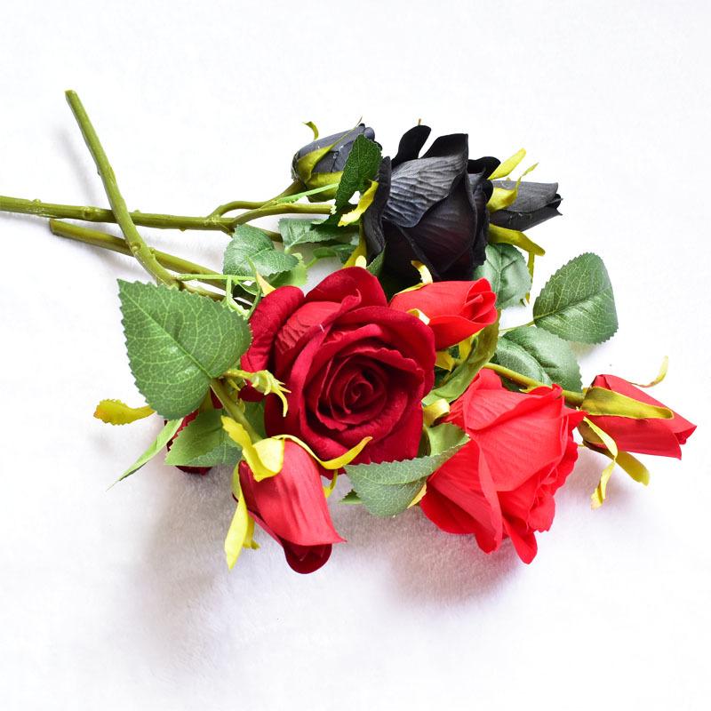 Buquê de 3 Buquês de Rosa de Veludo Europeu Dia dos Namorados Preto Decoração de Casa Flores Falsas Flores Artificiais Arranjo de Casamento