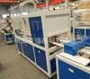 As matérias-primas de PVC são alimentadas do alimentador espiral para a unidade misturadora de alta velocidade para mistura em alta velocidade. As matérias-primas de PVC são totalmente misturadas no misturador quente e, quando atingem a temperatura adequada, são automaticamente colocadas no misturador frio para mistura em baixa velocidade de 40 a 50°. Em seguida, são alimentadas do alimentador de mola para a extrusora de parafuso duplo. As matérias-primas de PVC começam a plastificar aqui e são extrudadas através do molde para formar. Em seguida, a matriz de moldagem na mesa de moldagem a vácuo é moldada por vácuo e água de resfriamento. Ela é puxada automaticamente pela máquina de tração e a velocidade da máquina de tração é ajustada para sincronizar a extrusão da extrusora com a máquina de tração. O codificador rotativo é colocado na placa de reforço na saída da máquina de tração. O codificador rotativo começa a registrar automaticamente o metro e o comprimento. Quando o comprimento definido é atingido, um sinal é enviado para a máquina de corte sem cavacos da placa de reforço para corte. Finalmente, é empilhado automaticamente pela máquina de empilhamento.