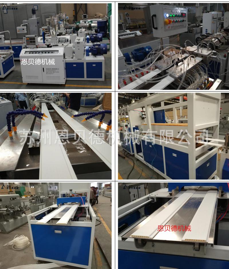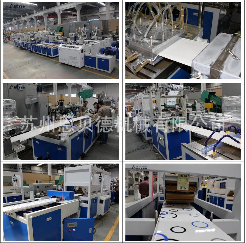 Linha de produção de reforço de teto de plástico PVC O equipamento de produção de reforço de plástico usa PVC como matéria-prima, que é leve, fácil de instalar, à prova d'água e anti-traça, com uma ampla variedade de padrões de superfície e cores, e é resistente à poluição, fácil de limpar e tem boas propriedades de isolamento acústico e térmico. Em particular, o novo processo adiciona materiais retardantes de chamas, que podem ser extintos imediatamente quando longe do fogo, tornando-o mais seguro de usar. Linha de produção de reforço de teto de plástico PVC O equipamento de produção de reforço de plástico tem forte resistência à água e resistência à abrasão.