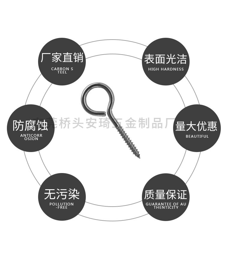 Nossa fábrica é especializada em P&D, personalização e fornecimento de parafusos de ilhós, ganchos triangulares, ilhós perfurados, ilhós escalonados, anéis, travas, agulhas em formato de 9, ganchos em S, fivelas em formato de O, fivelas em formato de D, ganchos para lâmpadas, ganchos para portas, ganchos para cortinas, ganchos para cabides, ganchos em formato de 7, ganchos em formato de 9 e outros ganchos curvos, ganchos, ganchos com formatos especiais, etc.