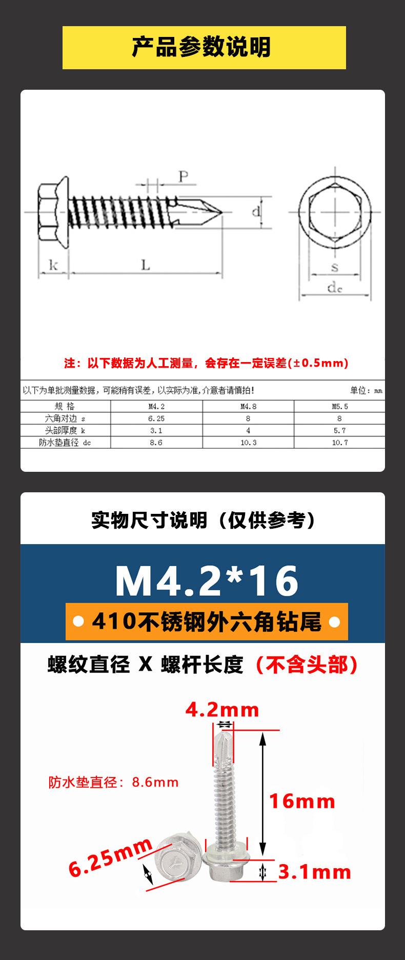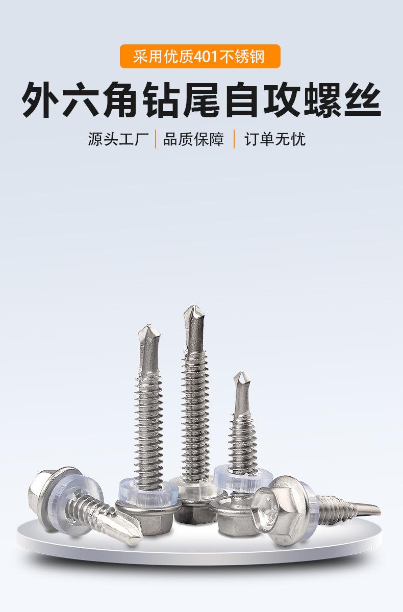 410 parafuso auto-roscante de cauda de broca hexagonal externo de aço inoxidável com parafuso autoperfurante de almofada Parafuso de cauda de andorinha de flange Huashi
